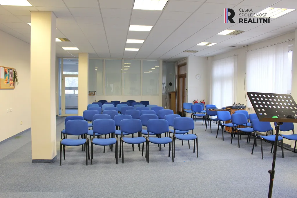 Představuji vám kancelářské prostory v 1. poschodí moderního domu na Sokolovské ul. v Karlových Varech. Celková výměra prostor činí celkem 270 m2. Jedná se o celé jedno patro, které je členěno do jednotlivých kanceláří ( v domě jsou prostory pronajímány po patrech ) Jedna z kanceláří je koncipována jako velká jednací místnost, jako jeden otevřený prostor o velikosti 110m2, který pojme větší počet zaměstnanců. Z tohoto prostoru je vstup na venkovní terasu o velikosti 90 m2 která je k dispozici k užívání. Další jednotlivé kanceláře jsou o velikosti 20 m2, 20 m2, 24 m2, 14 m2, 22 m2, 30 m2, kuchyňka 5,5 m2, WC muži 6 m2, WC ženy se sprchou 3 m2 a chodba 15,20 m2. Vytápění celého patra je plynovým kotlem.