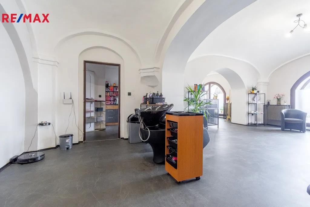 Architektonicky hodnotná budova je postavena na pozemku o celkové výměře 407 m². Dispoziční řešení domu nabízí aktuálně v přízemí 2 komerční prostory s výlohou a přímým vstupem z ulice o podlahové ploše celkem 178 m², včetně kompletního sociálního zázemí. Jeden prostor je provozován jako kadeřnictví, druhý poté slouží jako kanceláře.