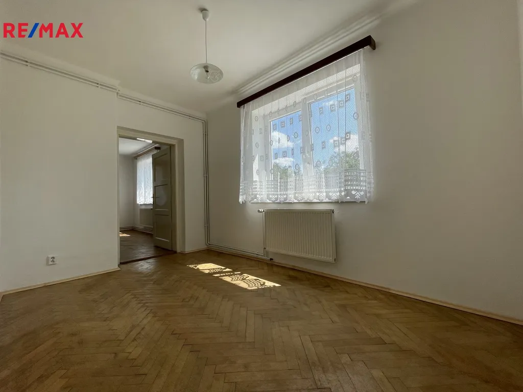 Exkluzivně nabízíme prodej spoluvlastnického podílu ve výši 1/2 na RD, který zahrnuje byt 3+1 (82 m²) v 1.NP, vlastní garáž, společné užívání zahrady a dvorku (cca 105 m²), společné půdní a sklepní prostory. Na pozemek RD se vstupuje brankou na zahradu s dvorkem či z druhé strany vjezdem ke garáži (20 m² z roku 2016). Při vstupu do domu se nacházíte na společné chodbě, odkud vedou vstupy do předmětného bytu, sklepních prostor či schody do patra, kde se nachází balkón ve společném užívání a dále lze pokračovat do půdních prostor. V předmětném bytě rekonstruovaném v roce 2005 (elektřina, voda, odpady) se nachází vstupní předsíň (4,7 m²), 3 neprůchozí pokoje (24 m²; 18,5 m²; 10,7 m²), kuchyň (13 m²) se spíží (1 m²) a průchodem do jednoho z pokojů (2,4 m²), koupelna (4,2 m²) s vanou (stáří 2 roky) a samostatné WC (1 m²). V bytě jsou plastová okna z roku 2016. Dům je napojen na obecní vodovod, kanalizaci, el. a plyn. Elektřina v bytě je v mědi. Krytina střechy je pokryta eternitem. Byt má zajištěný ohřev tepla i vody plynovým kombinovaným kotlem umístěným v koupelně bytu. Podlaha obytných pokojů je pokryta parketami, v kuchyni je kombinace PVC a koberce, v koupelně a WC je dlažba, ve vstupní předsíni je koberec. Nemovitost bude v budoucnu vyžadovat rekonstrukci střechy a hydroizolaci domu. Zajistíme Vám konzultaci možné koupě této nemovitosti – bezplatně s našim finančním poradcem. Více fotografií na stránkách RE/MAX. Bližší informace u makléře nabídky.