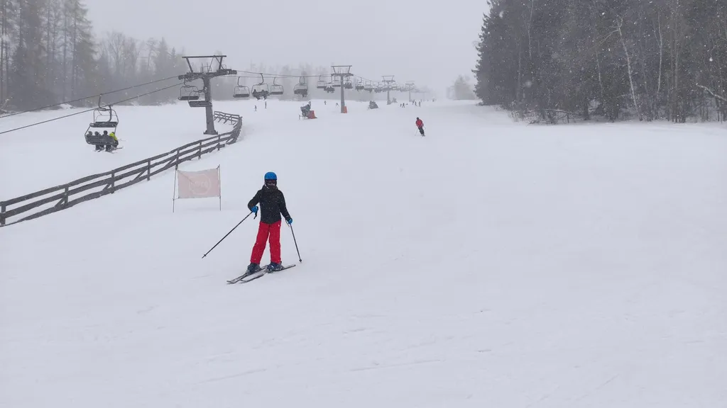 Apartmán je tvořen kuchyní s plně vybavenou kuchyňskou linkou, indukční varnou deskou, elektrickou horkovzdušnou troubou, mikrovlnou troubou, varnou konvicí a lednicí s mrazákem. Kuchyně je spojena s prostorným obývacím pokojem s rozkládací sedací soupravou, Smart Televizí. Druhým pokojem je ložnice, kde je manželská postel a dvě samostatné jednolůžkové postele. Dále zde najdeme koupelnu se sprchovým koutem, wc, bidetem a vybavena je také pračkou s funkcí sušení. Do apartmánu se vstupuje prostornou předsíní, před vchodem je vybudován odkládací uzamykatelný prostor na lyže a sportovní vybavení.