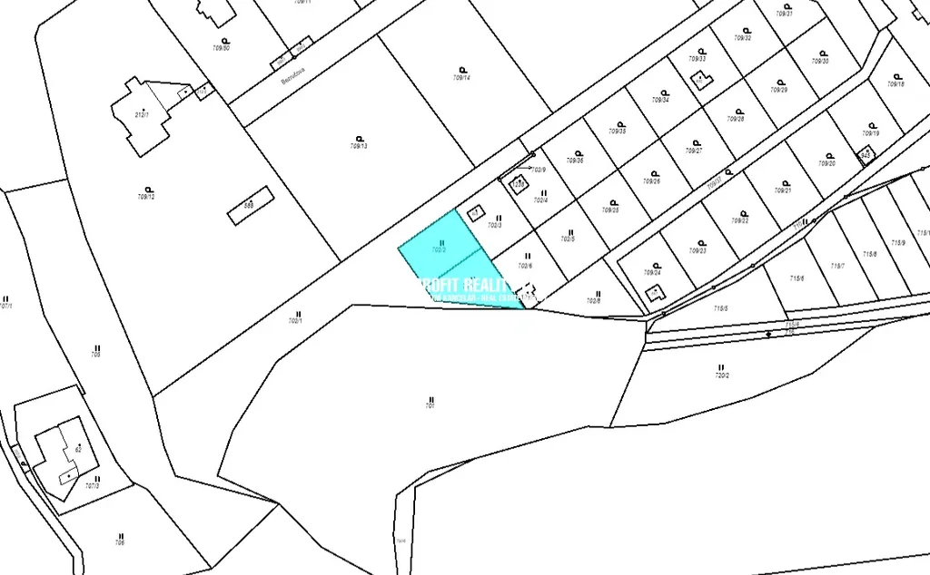 Pozemek je mírně svažitý orientovaný na severozápad k upravené příjezdové cestě s krásným výhledem. Na pozemku jsou 4 mobilní unimobuňky (jsou součástí kupní ceny), je zde místo na vybudování dvou chat. Na pozemku je přívod elektřiny, sezónní vody a nová vrtaná studna.