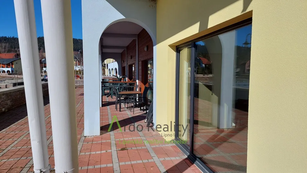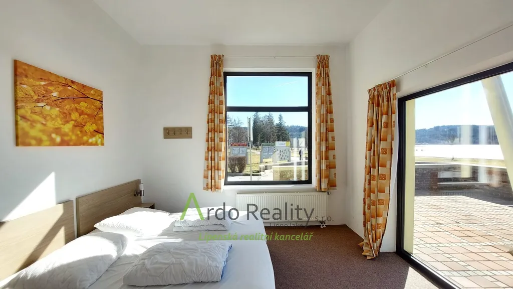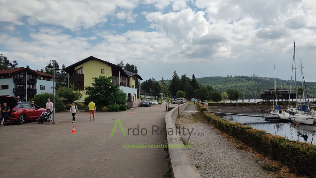 Apartmán s úžasnou terasou přímo u jezera v Lipně nad Vltavou na tom nejlepším místě disponuje především výhledem na Lipenské jezero, který se neomrzí. Terasa má 16 m2, obývací pokoj, z něhož je také krásný výhled na jezero Vás jistě také osloví svou rozlohou - 22,09 m2 a kuchyň s jídelnou 12,32 m2. Po čtyřech schodech se lehce dostanete do chodbičky, odkud je vstup do ostatních částí apartmánu. A to sice do ložnice, která má 17,76 m2, dále do koupelny a WC - 4,96 m2. V bytě je také technická místnost - 0,51 m2, ve které je nový plynový kotel Baxi Prime a zásobník na teplou vodu. Ve vedlejší podobné místnosti nalezneme mimo propriet potřebných na úklid také elektroměr, jističe a vodoměr - 0,27 m2. Do chodby samozřejmě vede hlavní vstup, jenž je označen číslem 123. Na fotografiích je vidět, že hned za rohem je vstup do místností se sklepy - sklep má rozlohu 2,05 m2. Apartmán je plně vybaven nábytkem, zařízením i vším ostatním.