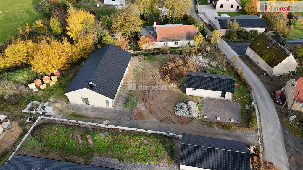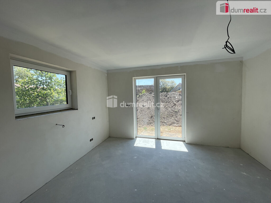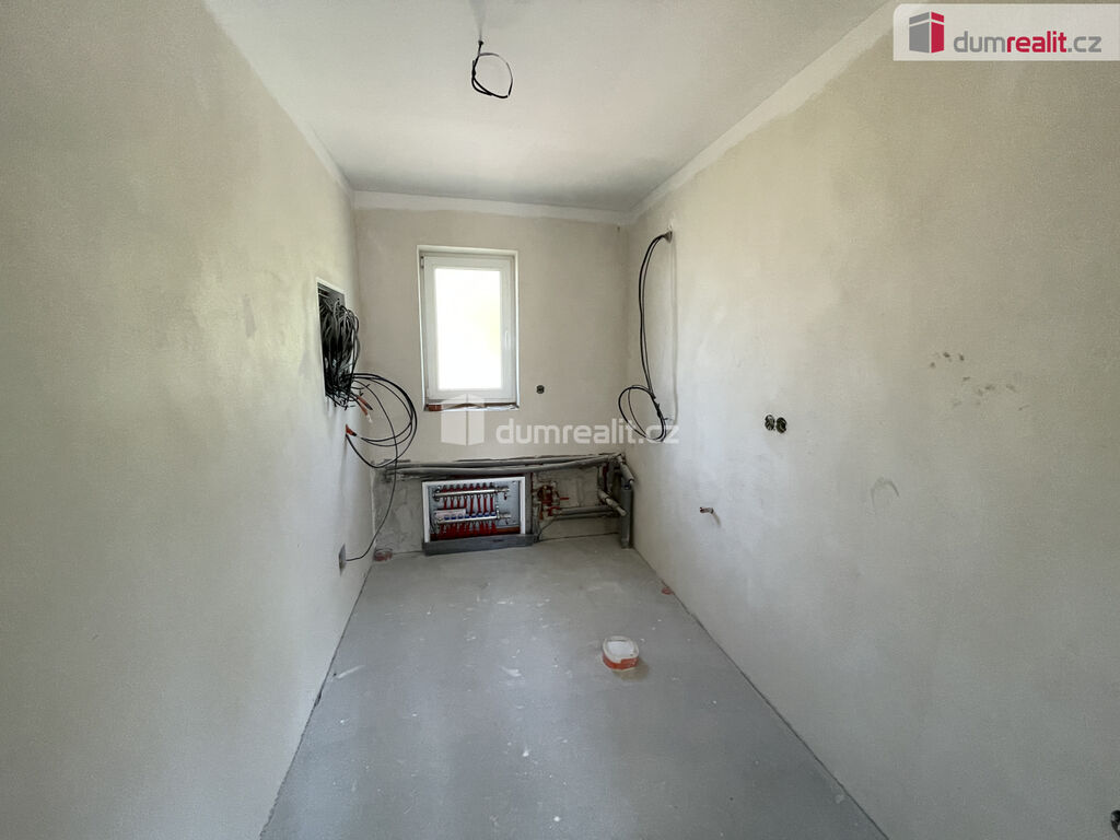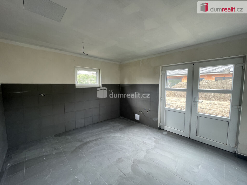 Stavba je ve fázi hrubé dokončenosti: rozvody elektřiny, vody a odpadů, betonové podlahy s podlahovým topením, sádrokartonové podhledy s přípravou na světla, omítky, venkovní fasáda, příprava pro tepelné čerpadlo a betonová střešní krytina. Osazena plastová okna a dveře v barvě antracit (trojskla). Finální dokončení je možné upravit dle vlastních představ.
