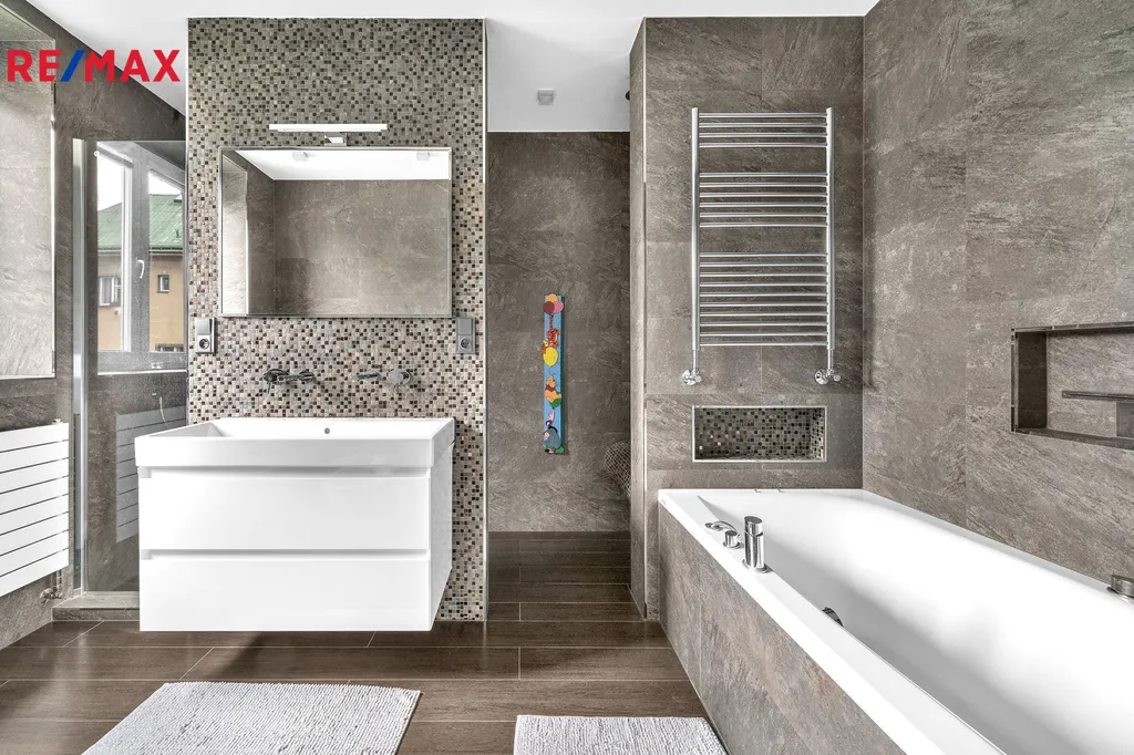 Nabízíme k prodeji luxusní rodinný dům s vnitřním bazénem a trojgaráží po celkové rekonstrukci, který se nachází v centru Trutnova v ulici Dělnická. Velkorysé a náročné stavební úpravy citlivě respektovaly atmosféru objektu s prvky prvorepublikové architektury a veškeré práce byly provedeny s maximální pečlivostí a citem pro detail, vše za účasti renomované architektonické kanceláře. Nadčasová dispozice domu byla téměř zachována, mezi trojgaráž a stavbu rodinného domu byl vestavěn bazén se saunou, který navazuje přes prosklené dveře přímo na obytný prostor v prvním NP. Bazén je přístupný přímo i ze zahrady velkoformátovými okny. Celková zastavěná plocha objektu je 320 m2 (s bazénem a garáží), užitná podlahová plocha samotného domu 355 m2 (bez bazénové části a garáže). Čtyřpodlažní dům kromě dvou obytných podlaží nabízí v prvním podzemním podlaží rovněž kompletně zrekonstruované prostory sloužící k podnikání se samostatným přístupem, nyní jsou zde tři samostatná studia se zázemím, která jsou pronajímána, ve čtvrtém nadzemním podlaží je k dispozici prostorná půda vhodná k případné vestavbě. V prvním nadzemním podlaží v úrovni zahrady je polootevřený prostor denní části tvořený kuchyní s jídelním koutem a spíží, obývacím pokojem, pracovnou, toaletou, technickým zázemím a původním schodištěm. Dále se zde nachází bazén, vířivka a sauna s ochlazovnou. Ve druhém nadzemním podlaží se nacházejí tři prostorné místnosti, z nichž dvě mají východ na balkon lemující jihozápadní část domovní fasády a dvě luxusní koupelny. Jedna z koupelen s vanou i sprchovým koutem je přístupná přímo z ložnice rodičů, v této místnosti se nezapomnělo ani na praktickou šatnu. Foto z místností ve druhém nadzemním podlaží z důvodu zachování soukromí majitele v inzerci chybí. Při rekonstrukci bylo dosaženo energetické náročnosti objektu třídy „B“. Pečlivě založená a udržovaná zahrada s menším dětským hřištěm a prostorem na grilování, perfektní oslunění rodinného domu a přístupové cesty s možností vytápění v zimních měsících podtrhují atraktivnost nabídky. Klidné místo v zástavbě rodinných a menších bytových domů poskytuje všechny výhody bezprostřední blízkosti centra města s maximální občanskou vybaveností. Více informací k výjimečné nabídce pro náročné klienty a k možnostem financování sdělí realitní kancelář na telefonním čísle 739 486 402.