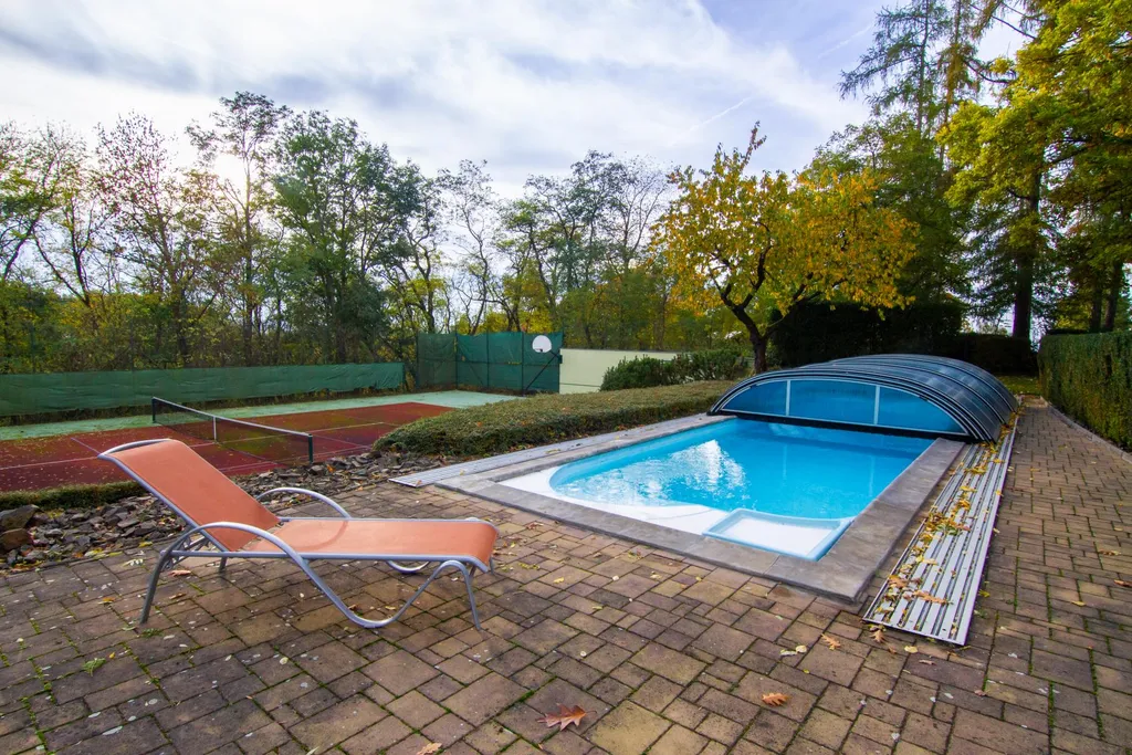 Exkluzivně nabízíme k prodeji mimořádnou rezidenci v prestižní lokalitě Říčany, okres Praha-východ, která spojuje luxusní bydlení s výjimečným soukromím a přírodní scenérií. Tato impozantní vila, rozkládající se na pozemku o rozloze 5.219 m, je pravým synonymem pro nadstandardní životní styl. Vila se pyšní celkovou užitnou plochou 807 m, zahrnující prostorné terasy o rozloze 184 m. Dům z roku 2000 je rozdělen do tří pater přízemí (333 m), patro (217 m) a suterén (73 m), a nabízí tak dostatek prostoru pro komfortní život i reprezentaci. Přízemí vás přivítá impozantní halou, která vede do luxusně zařízeného obývacího pokoje s kuchyní a jídelnou. Dále zde naleznete ložnici/pracovnu, šatnu, další ložnici a koupelnu s masážní vanou. Pro relaxaci je k dispozici vnitřní bazén s minibarem a saunou. Pro vaše vozidla je připravena prostorná garáž pro tři vozidla o velikosti 52 m, dílna a sklady. Patro poskytuje další obytné prostory včetně herny s předsíní, šatny, pracovny, ložnic, koupelny a pokoje pro hosty s vlastní koupelnou. K dispozici jsou také toaleta a terasy s výhledem do zahrady. Suterén je vyhrazen pro vinárnu, fitness, další sklady a kotelnu. Exteriér vily je opravdovým klenotem s venkovním bazénem, tenisovým kurtem, altánem s posezením a grilem, přírodním jezírkem a umělou závlahou, která zajišťuje bezchybnou údržbu zeleně. Malé jezírko u domu dodává pozemku punc idyly. Vila je situována v klidné a bezpečné části Říčan, s výbornou dostupností do centra Prahy vlakem, cca 30 minut. Tato nemovitost je ideální pro ty, kteří hledají exkluzivitu, soukromí a pohodlí blízko hlavního města. Pro více informací či domluvení prohlídky, prosím, kontaktujte nás. Budeme se těšit na možnost ukázat vám tento výjimečný domov. K nastěhování po dohodě.