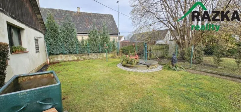 Dům má přidruženou zahradu o rozloze přibližně 1891 m2. Pro vytápění jsou využívaná krbová kamna. Voda je řešena z veřejného vodovodu a užitková voda z vlastní studny na pozemku, odpad je sveden do septiku. Dále je součástí prodeje bazén, plechová garáž a zahradní domky, které jsou umístěné na zahradě.