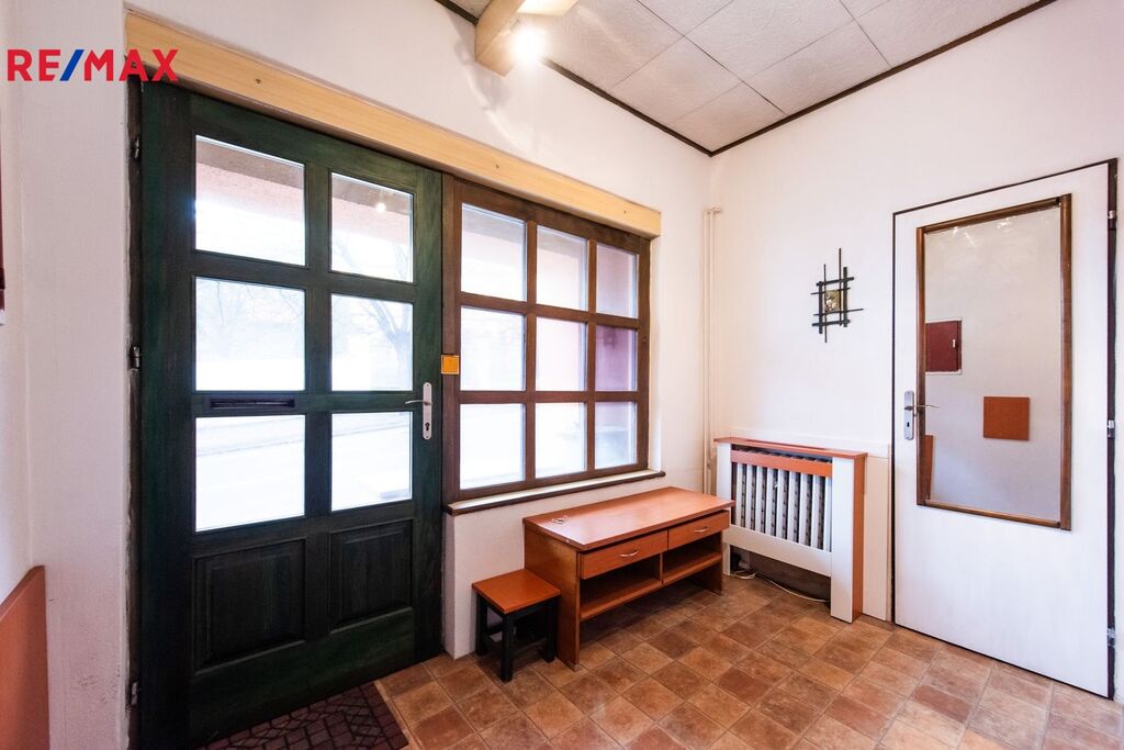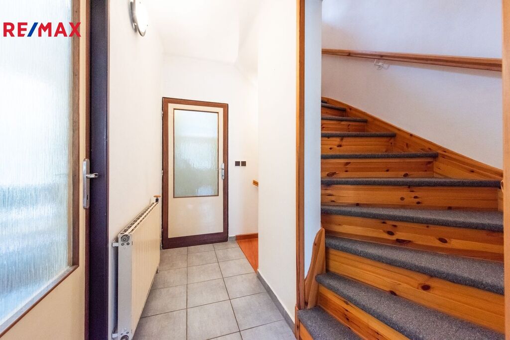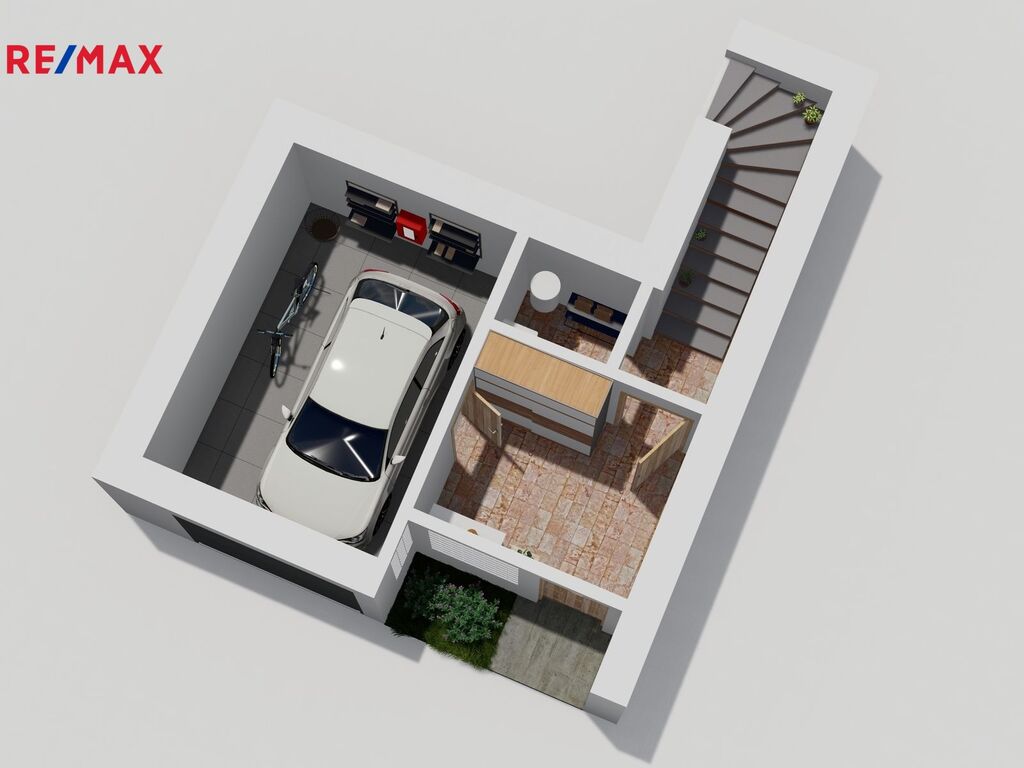 Vstup do domu je z přilehlého chodníku přes zádveří a vstupní místnost, kde jsou umístěny vestavěné skříně. Z této místnosti můžete vstoupit jak do přilehlé garáže tak i do technické místnosti kde je umístěn plynový kotel a bojler. Dále můžete pokračovat centrálním schodištěm do 2 NP.