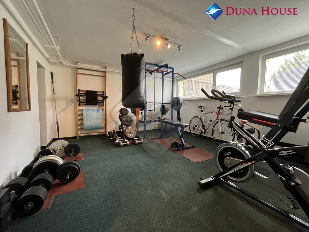 V suterénu se nachází technická místnost s tepelným čerpadlem vzduch-voda značky Toshiba, koupelna se sprchovým koutem a WC, posilovna a další dvě místnosti, které jsou využívány pro odklad věcí. Ze suterénu vede další vstup na zahradu.