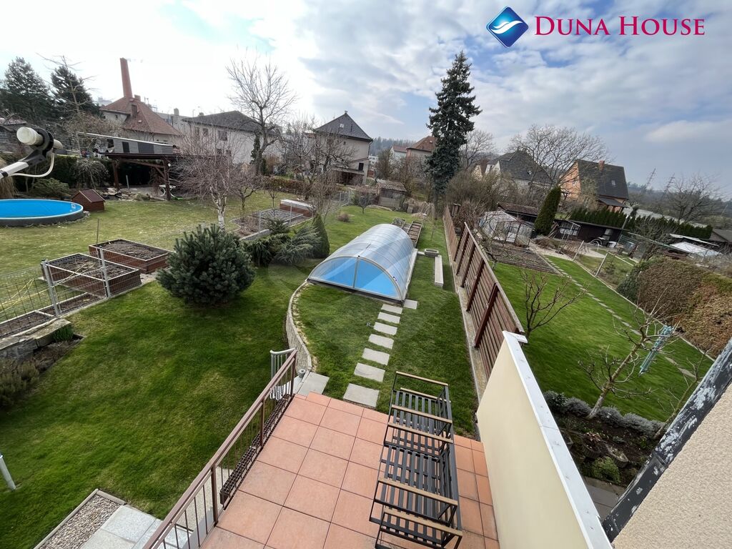 Z domu a zahrady je výhled na blízký zámek konopiště.