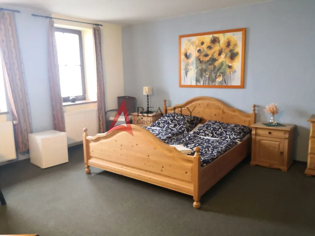 Nabízíme exkluzivně prodej krásného penzionu, který majitel získal od šlechtického rodu "Kolowratů". I díky těmto majitelům je penzion nenásilně zařízen v zámeckém stylu. Za budovou se nachází menší pergola pro uzavřenou společnost. V penzionu je 9 pokojů. Každý má samostatnou koupelnou a WC. Celková kapacita penzionu je 26 lůžek (3x 4lůžkový, 2x 3lůžkový, 4x 2lůžkový pokoj). Na moderně zařízenou kuchyň navazuje stylová restaurace s barem a 2 velké venkovní terasy (1 krytá, 1 otevřená). V případě zrušení kuchyně a zachování pouze přípravny pro snídaně a jídelny je možné z kuchyně vybudovat další 2 apartmány.