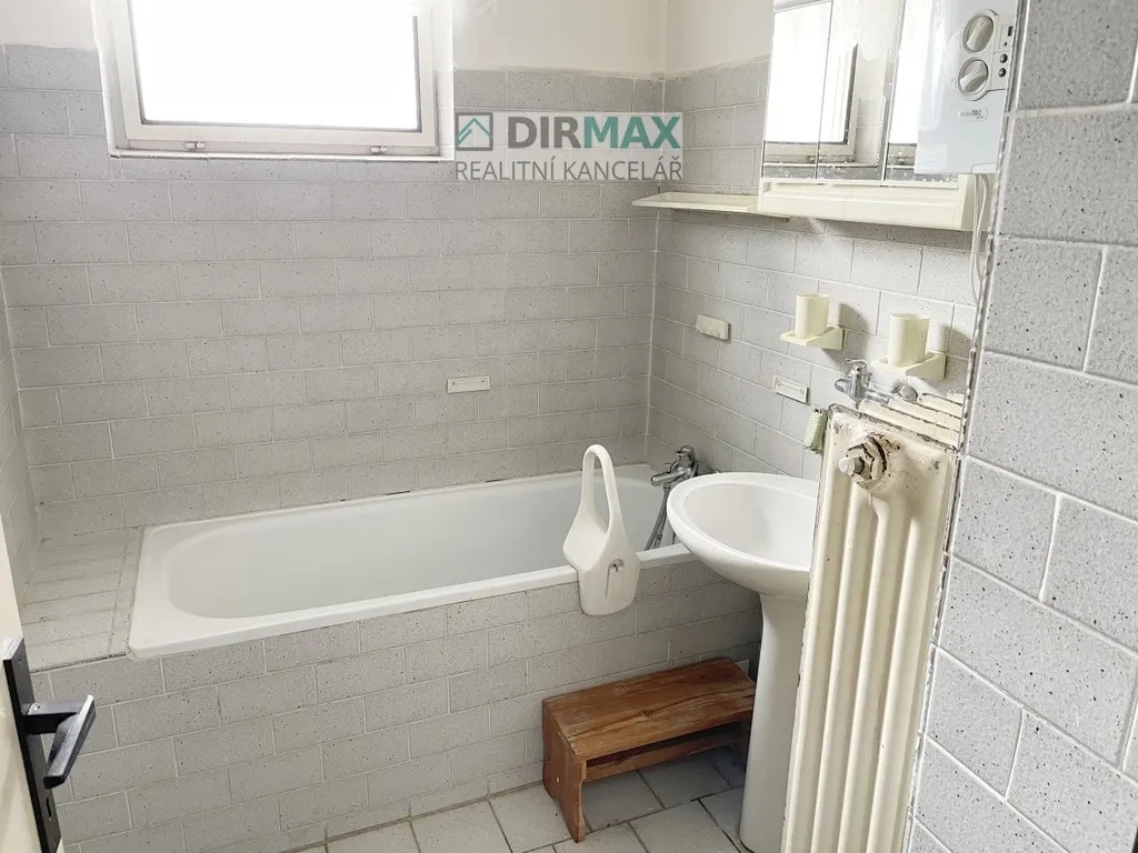 V koupelně je umyvadlo a vana a kombinovaný plynový kotel Vaillant, který slouží k vytápění a k ohřevu teplé vody. V celém domě jsou namontovány topné radiátory, napojené na kotel. V koupelně je velký prostor na pračku.