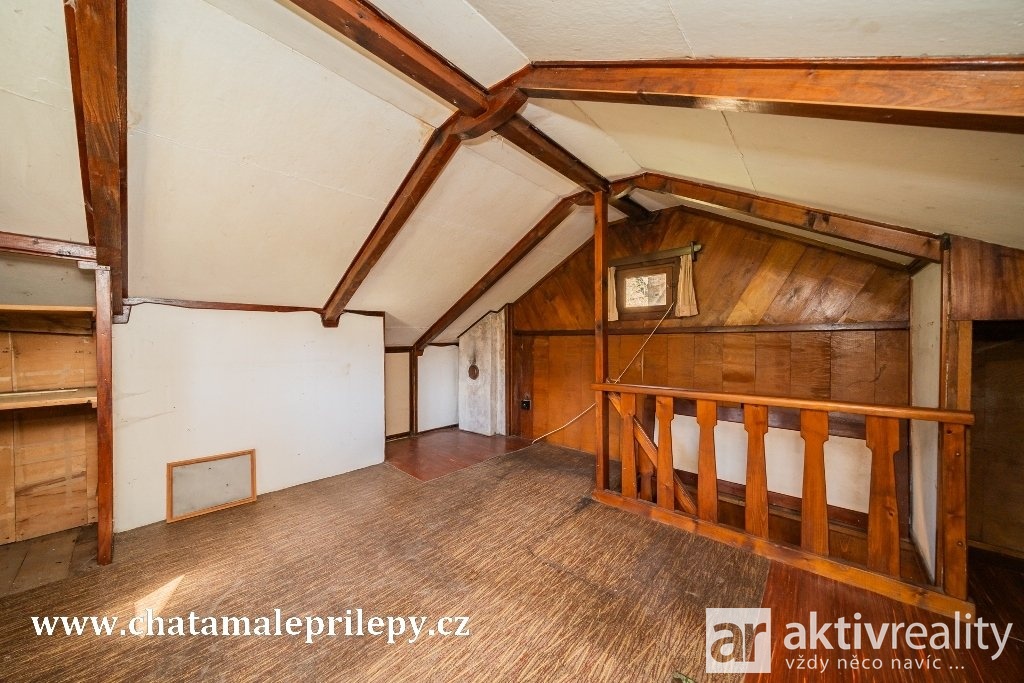 V přízemí vás čeká předsíň, malá komora a útulný obývací pokoj s koutem pro kuchyňku a s rustikálním krbem, kde si můžete užít teplé večery. Po krátkém výstupu po schodišti se dostanete do podkroví, které bude pravděpodobně sloužit jako ložnice, kde vás čeká klidný spánek a odpočinek po dni stráveném procházkami nebo výlety do okolní přírody. Do chaty je zavedena elektřina. Na chatu navazuje malá kůlna, kde je i místo pro chemické WC.