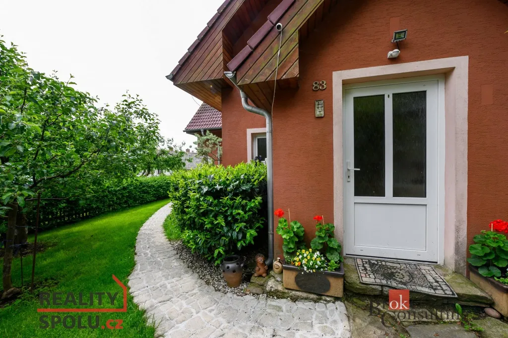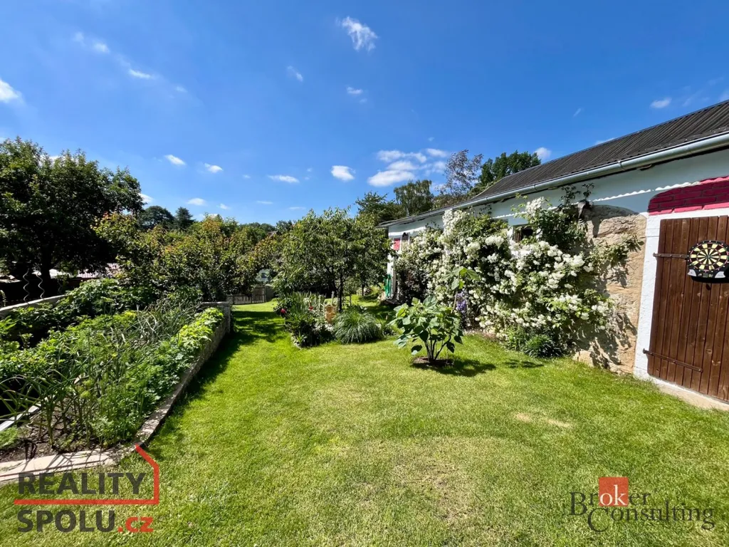 Stavba je součástí překrásné, udržované zahrady, kde najdeme širokou škálu květin a keřů. Součástí zahrady je také původní zemědělská stavba, která dnes slouží jako kolna a zázemí. Na terase domu je pak zřízené posezení s grilem i udírnou.