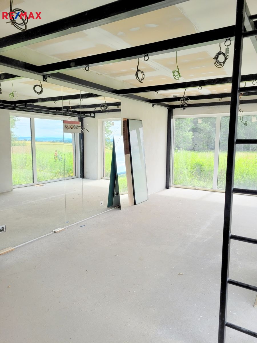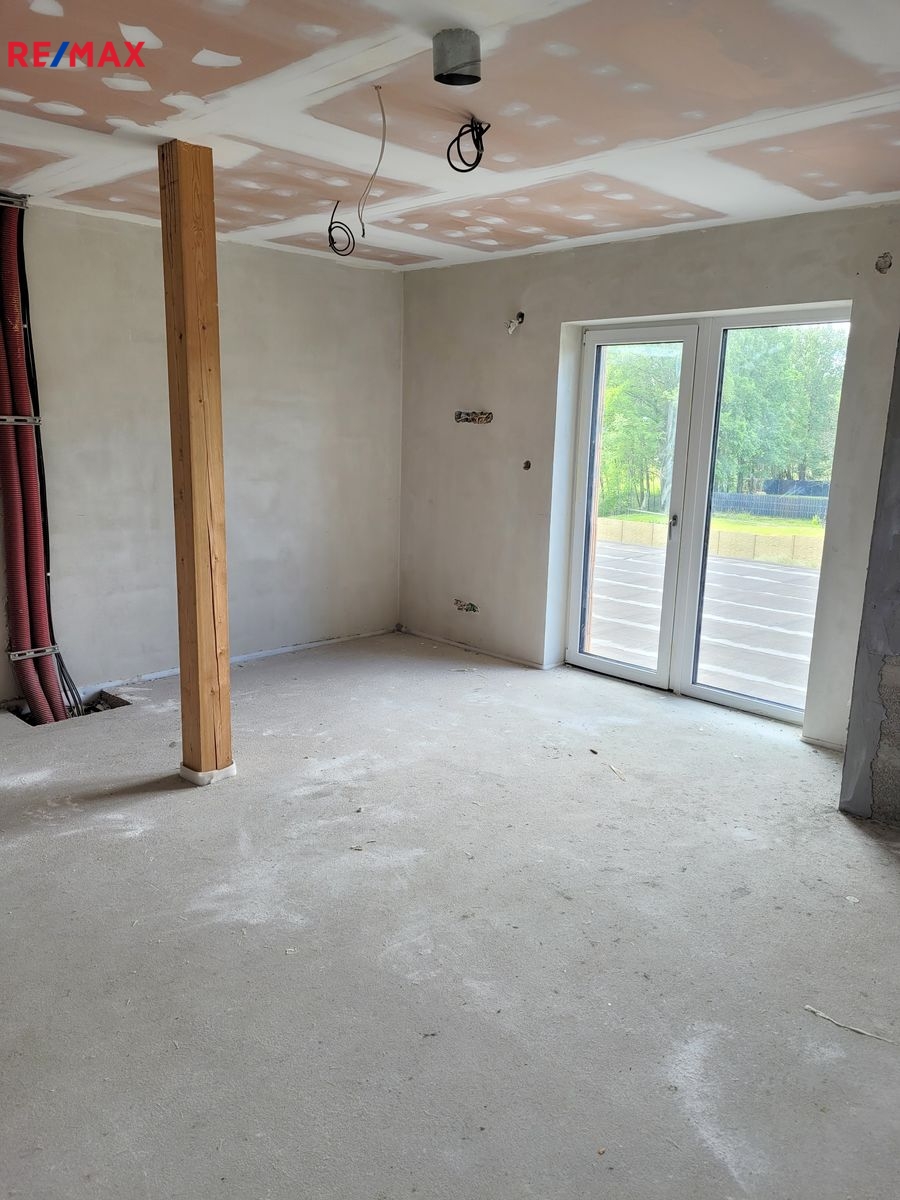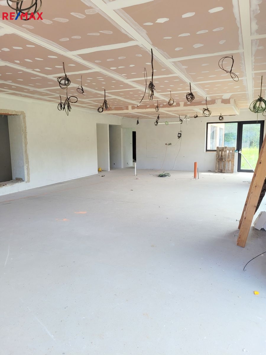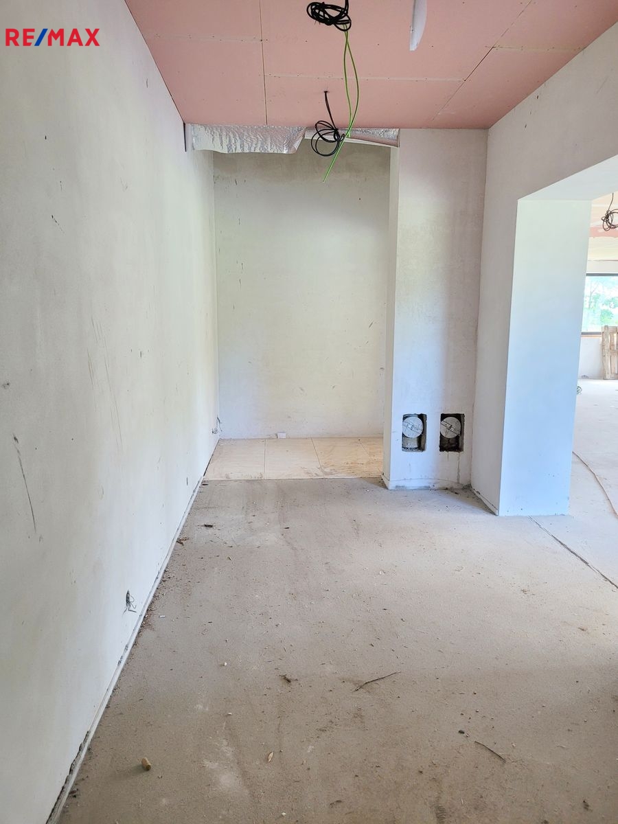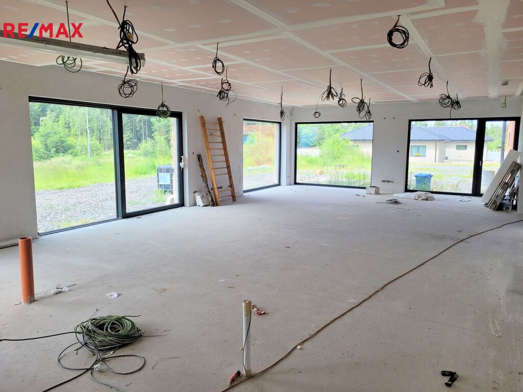 Dovolujeme si Vám nabídnout k prodeji novostavbu RD, kterou můžete dokončit podle Vašich představ ve vyhledávané lokalitě Rusalka u obce Bohutín okr. Příbram. Nemovitost je dispozičně řešena: 1.N.P. zádveří, garáž (104.46 m2), pracovna, chodba, WC + sprcha, technická místnost, sklad, obývací pokoj, jídelna + kuchyň, chodba, šatna, ložnice, koupelna, wellness, WC, tj. užitná plocha celkem 439.11 m2 a obytná plocha 137.31 m2. Podkroví: Hala – galerie, chodba, koupelna + WC, pokoj, pokoj, koupelna + WC, pokoj, tj. užitná plocha celkem 209.04 m2 a obytná plocha 96.23 m2.