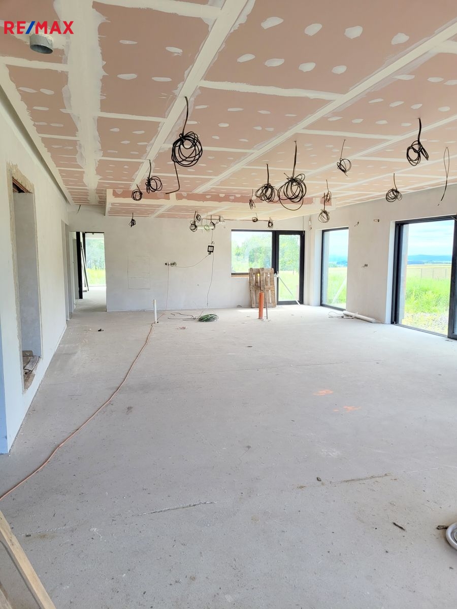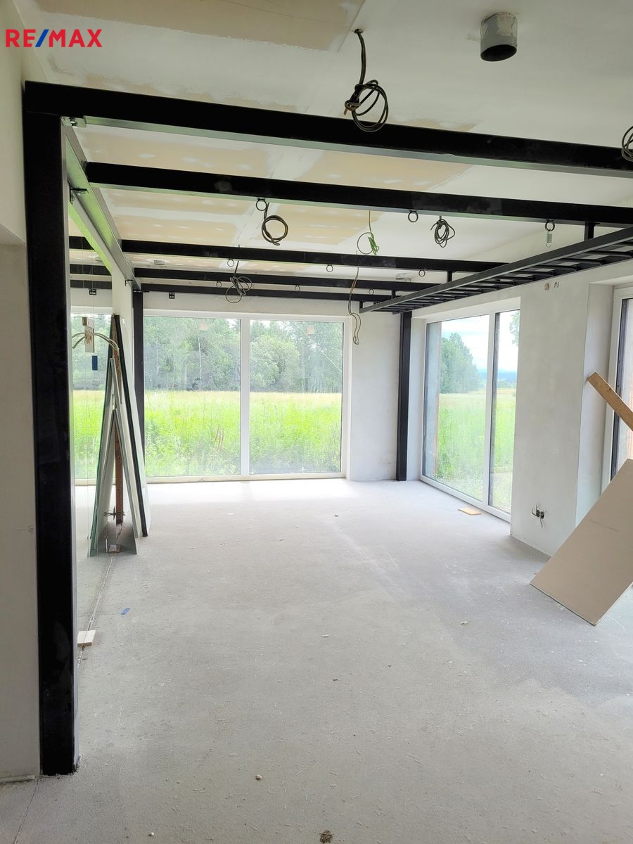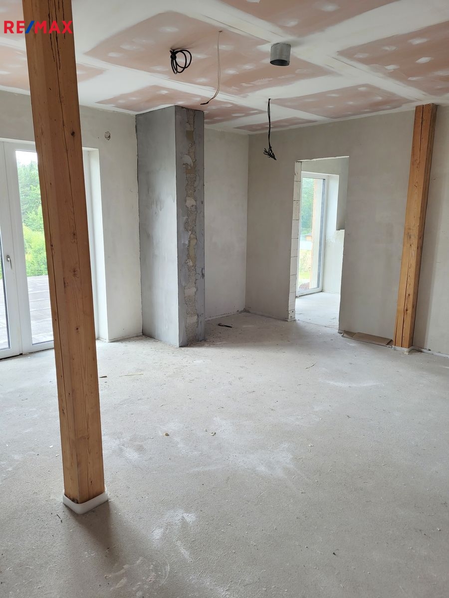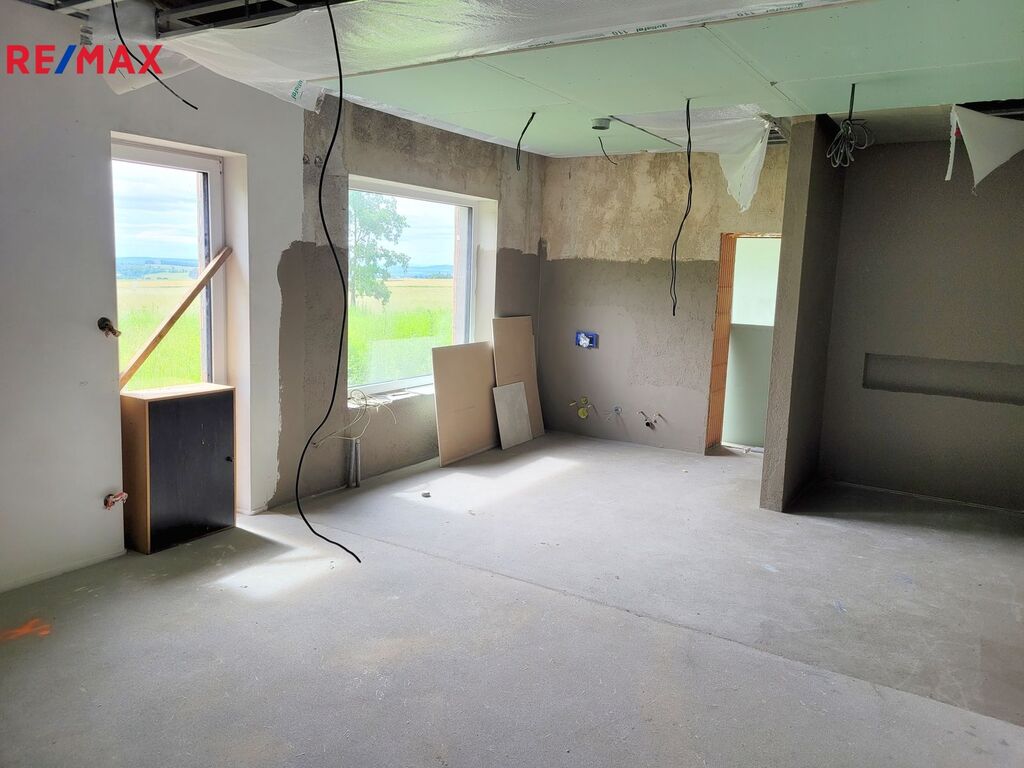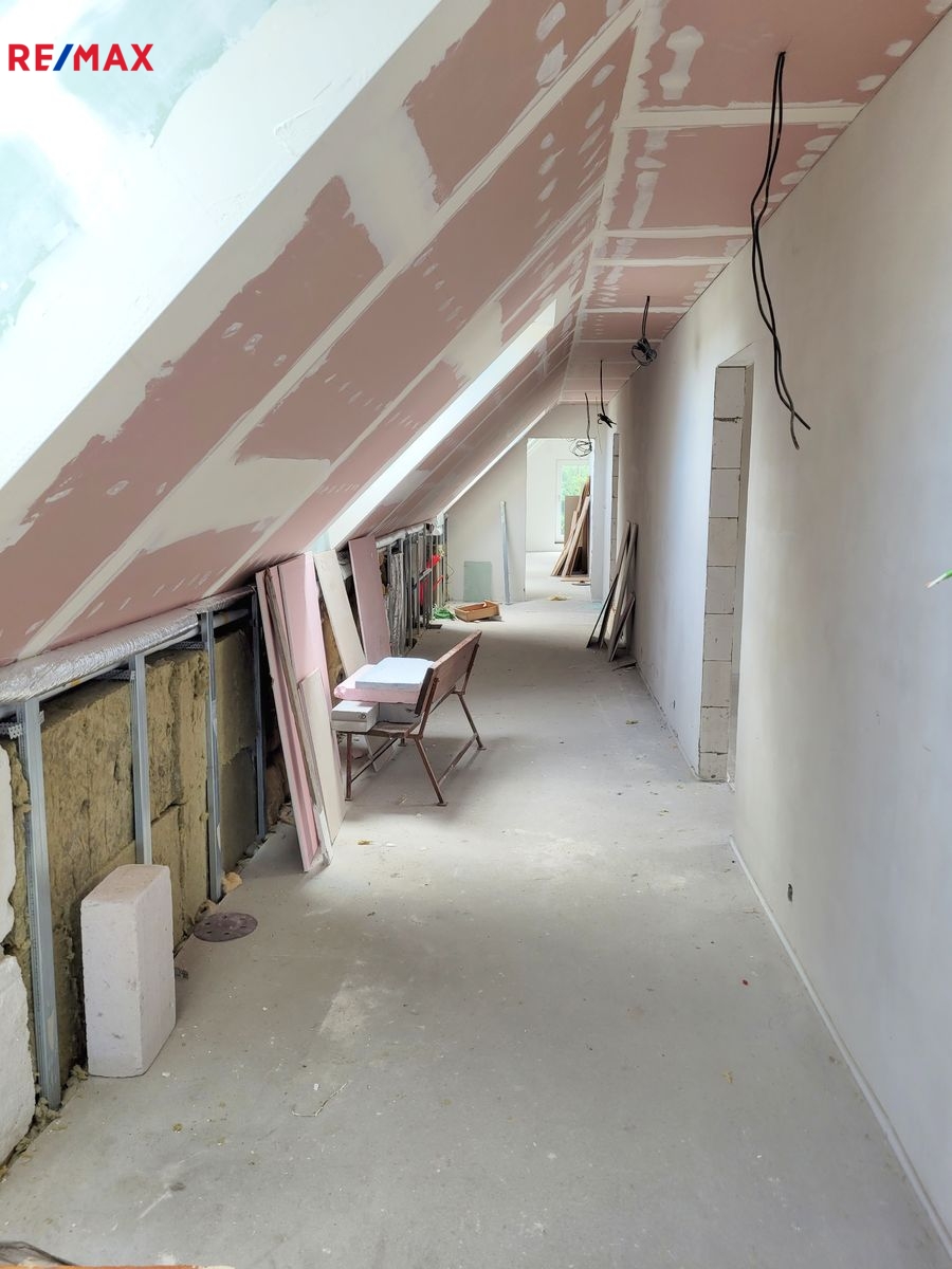 Dovolujeme si Vám nabídnout k prodeji novostavbu RD, kterou můžete dokončit podle Vašich představ ve vyhledávané lokalitě Rusalka u obce Bohutín okr. Příbram. Nemovitost je dispozičně řešena: 1.N.P. zádveří, garáž (104.46 m2), pracovna, chodba, WC + sprcha, technická místnost, sklad, obývací pokoj, jídelna + kuchyň, chodba, šatna, ložnice, koupelna, wellness, WC, tj. užitná plocha celkem 439.11 m2 a obytná plocha 137.31 m2. Podkroví: Hala – galerie, chodba, koupelna + WC, pokoj, pokoj, koupelna + WC, pokoj, tj. užitná plocha celkem 209.04 m2 a obytná plocha 96.23 m2.