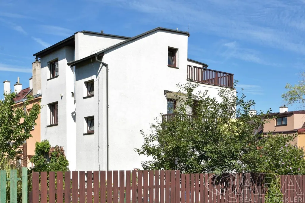 Hledáte zajímavý dům se zahradou pro bydlení nebo v kombinaci s podnikáním - nabízím k prodeji prostorný třípodlažní dům dispozice 6 + 2 s terasami, garáží a zahradou v Praze 10 - Zahradní město. Koncový uliční objekt, v letech 1993 a 1994 proběhla rekonstrukce během které se přistavělo poslední patro a realizovala se pochozí terasa (3NP). Při další rekonstrukci došlo k obnově a zateplení fasády domu, výměně původních oken za okna plastová s izolačním dvojsklem a realizovalo se nové vytápění domu. Celkově je dům v dobrém technickém stavu, ve 3NP si nový majitel dokončí úpravy podle svých představ. Zastavěná plocha objektu je rozšířila o plochu garáže v roce 1995 na nynějších 130 m2, zahrada se vzrostlou zelení poskytuje 400 m2.