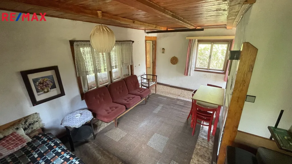 Nabízíme na prodej chatu v osadě U Cajsů nedaleko řeky. Chata je částečně zděná - sklep a přízemí a částečně dřevěná- podkroví, dispozičně jako 2x1+1.