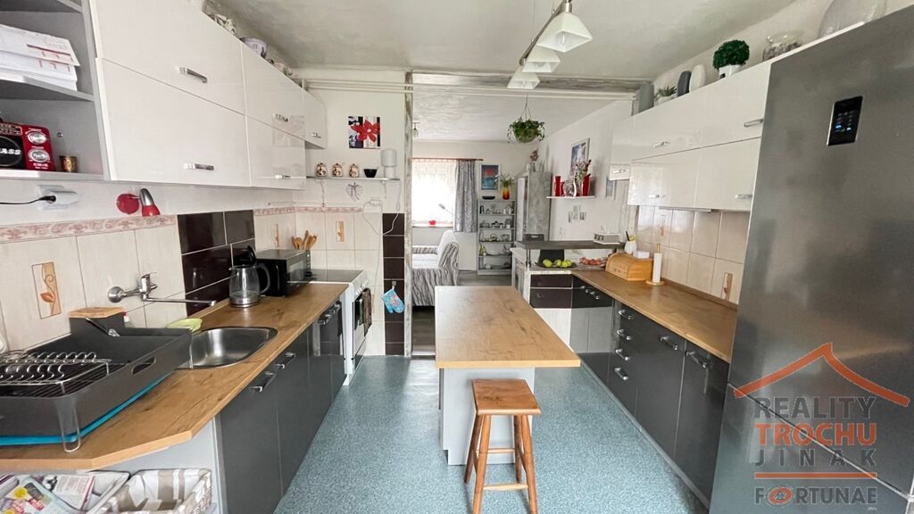 Nabízíme k prodeji dům v obci Čistěves, okr. Hradec Králové; pozemek celkem 1.715 m2, užitná plocha 175 m2. Dispozice: 1. PP – částečně podsklepeno. 1. NP – zadní část domu o dispozici 4+kk po kompletní rekonstrukci - chodba, obývací pokoj s kuchyňským koutem, ložnice, koupelna (vana, sprchový kout), WC, 2. NP – 2 pokoje, lodžie. Dále na tuto obytnou rekonstruovanou část domu navazuje původní stavba rodinného domu, nyní o dispozici 2+1, která je určena k rekonstrukci s možností dalšího využití bydlení nebo podnikání. Technická místnost s novým elektro kotlem, bojlerem a kamny na TP. Půda – možnost další vestavby. Dům je po rekonstrukci: nová střešní krytina (2024), kuchyňská linka, vyvložkování komína (2023), v zadní obytné části nová plastová okna (2016). Vytápění: ÚT kombinace elektrokotel + kotel na tuhá paliva, krbová kamna. IS: obecní vodovod + studna s užitkovou vodou, ČOV, elektřina 230/400V, plyn HUP na pozemku. Na zahradě je zděný objekt s letní kuchyní a dílnou, a dále dřevěný altán s posezením. Obec Čistěves se rozkládá v malebné členité krajině cca 12 km severozápadně od Hradce Králové (směr Jičín), nedaleko plánované rychlostní komunikace R35. Lesem Svíb prochází naučná stezka. Do obce pravidelně zajíždí pojízdná prodejna. Náš úvěrový specialista Vám připraví nabídku financování podle Vašich požadavků.