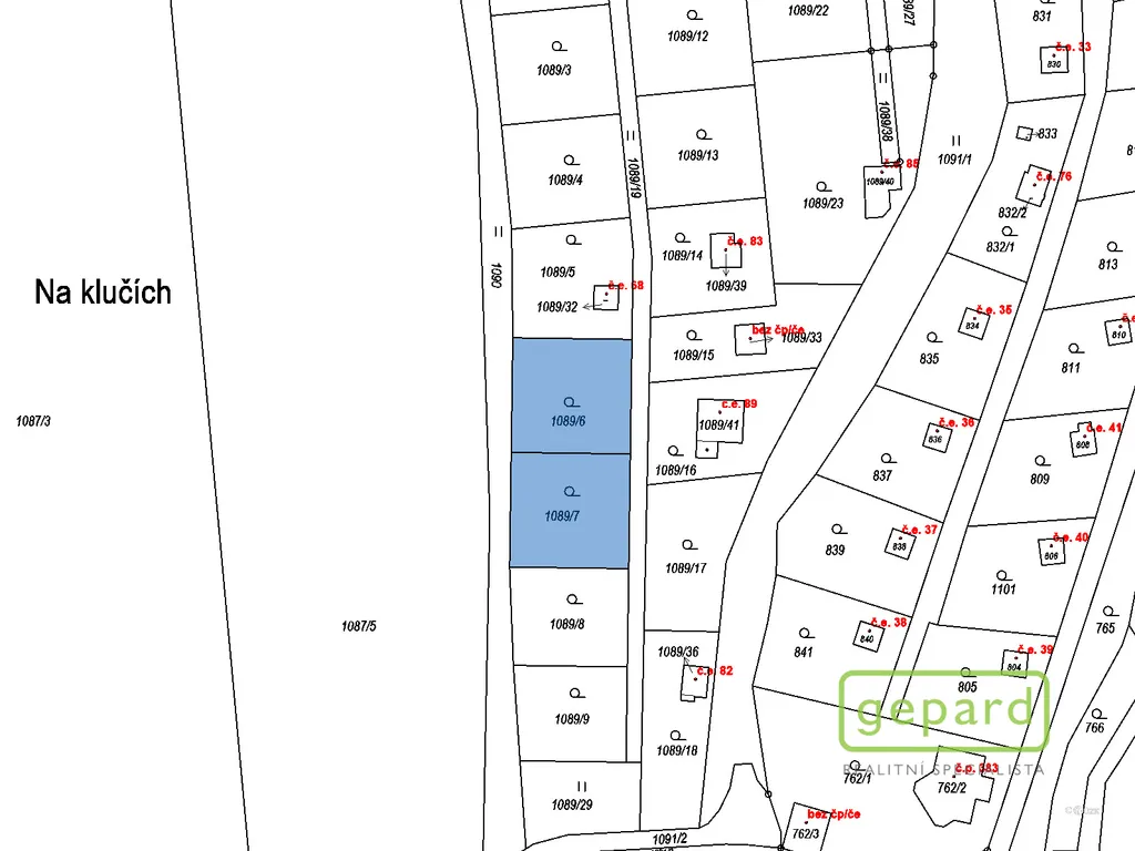 celková plocha 770 m² (parcely č. 1089/6 a 1089/7)
