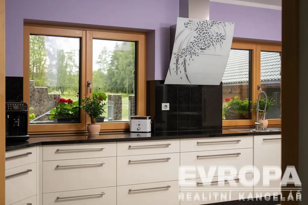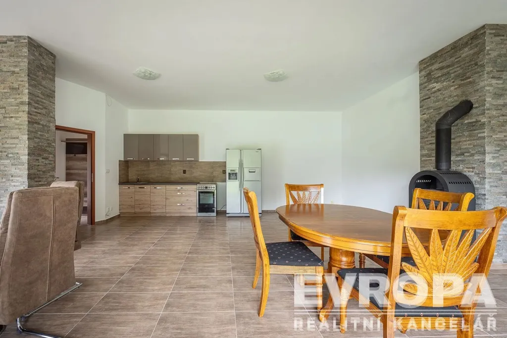 Tento velkorysý dům, či spíše vila, je navržen pro ty nejnáročnější z vás, kteří hledají něco opravdu výjimečného. Už při prvním pohledu vás okouzlí prostorný a světlem prozářený obývací pokoj s krbem, kde se snoubí osobitý styl s pohodlím. Prakticky zařízená kuchyň s jídelním koutem a komorou splní všechna vaše kulinářská přání.