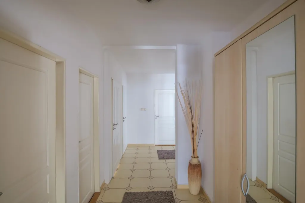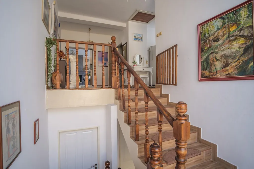 Samotný vícegenerační dům disponuje 2 patry, obě patra jsou situována do dispozice 3+1 a lze je užívat jako samostatné bytové jednotky pro vícečlennou rodinu. V přízemní jednotce naleznete ložnici, obývací pokoj, velkou kuchyni, koupelnu a např. také dětský pokoj se samostatným vstupem do zadní zahrady. V patře poté v podstatě stejnou bytovou jednotku disponující navíc vinylovou podlahou, vestavěnými skříněmi, vstupem na dvě lodžie a menším patrovým pokojem (ideálně jako pokoj pro děti).