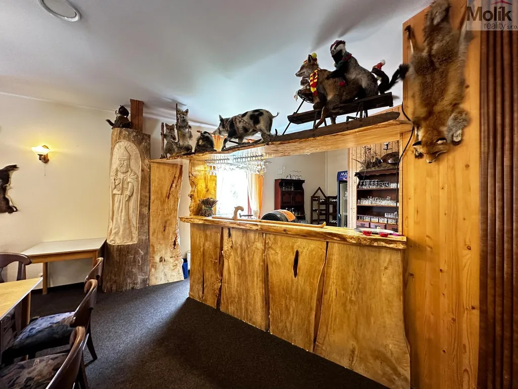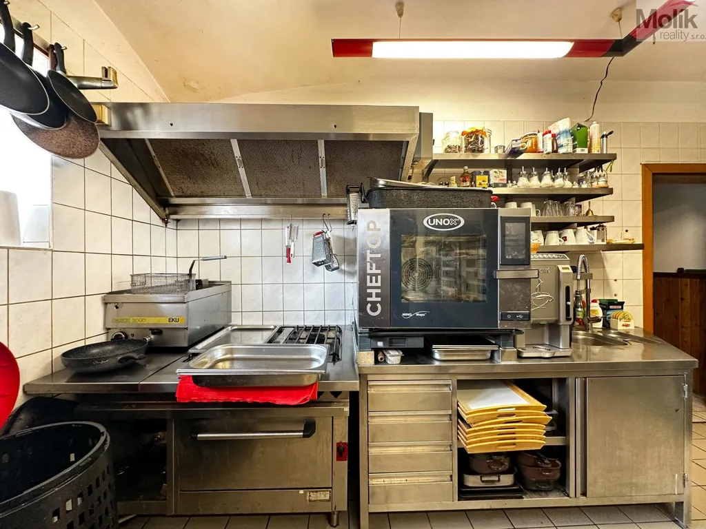 Restaurace je zavedená a plně vybavená pro gastronomickou činnost s kapacitou 60 míst, navíc venkovní terasa s grilem. Druhé a třetí patro slouží k ubytovaní hostů, K dispozici je celkem 21 pokojů - 17 pokojů má vlastní sociální zařízení, 2 pokoje jsou propojené se společnou koupelnou a 2 pokoje jsou bez koupelny.