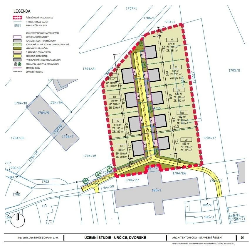 Pozemek je územním plánem vedený v plochách pro výstavbu rodinných domů domy venkovského typu. Pozemek navazuje na stávající okrajovou zástavbu rodinných domů. Koeficient zastavění dle ÚP je maximálně 40%, plochy pro bydlení individuální, maximálně 1 nadzemní podlaží. Dopravní napojení ze stávající místní komunikace vedené k hranici pozemku. V současné době se na pozemku nachází zemědělská usedlost využívaná jako sklad, která se může využívat pro komerční nebo rezidenční účely, případně je možné budovu odstranit. Inženýrské sítě na hranici pozemku, elektřina zavedena. Obec Určice disponuje dobrou občanskou vybaveností, dobrou dostupností do města Prostějova (nachází se použe 6km jihozápadním směrem), v podhůří Drahanské vysočiny. Vzdálenost do Prostějova 6 km, nájezd na dálnici cca 4 km (nájezd Vranovice).