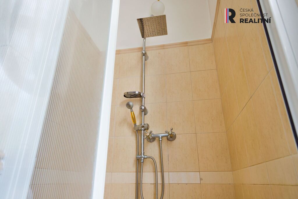 Dále sprcha, sociální zařízení (pisoár a WC), společenská místnost 20m2 se vstupem na zahradu či po nově vybudovaném dřevěném schodišti do prostorné bytové jednotky 2+1, s koupelnou s vanou, sprchou a odděleným WC.