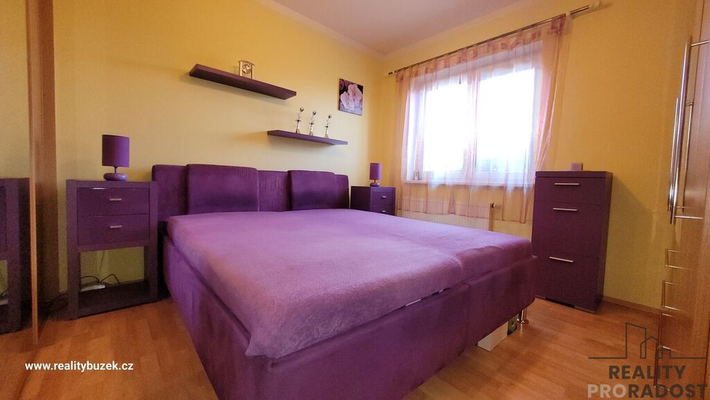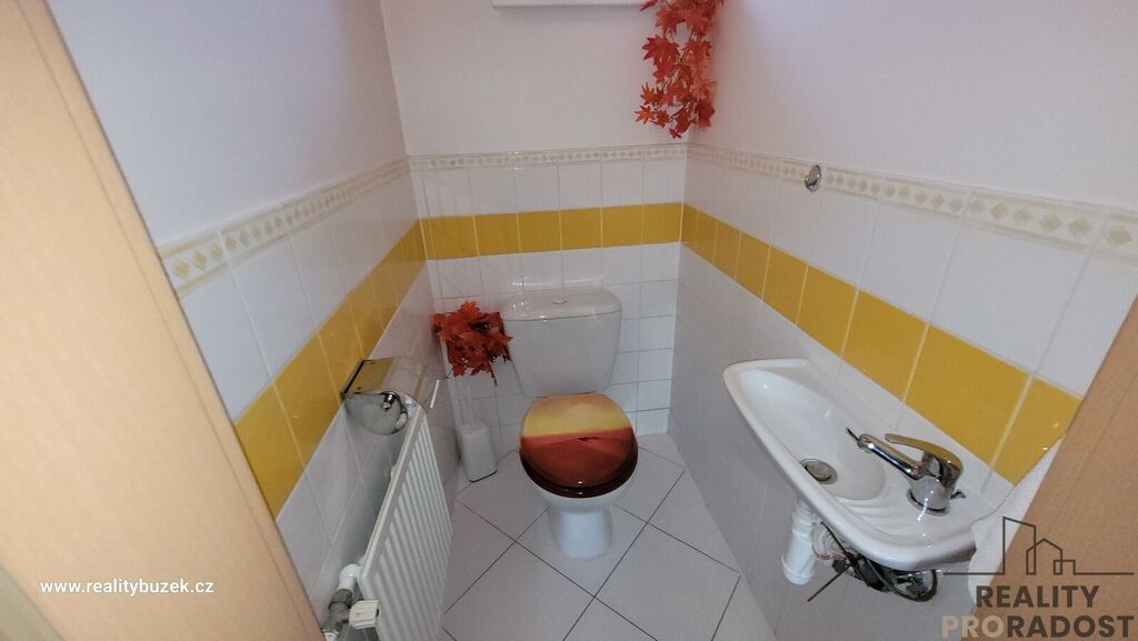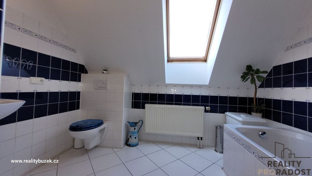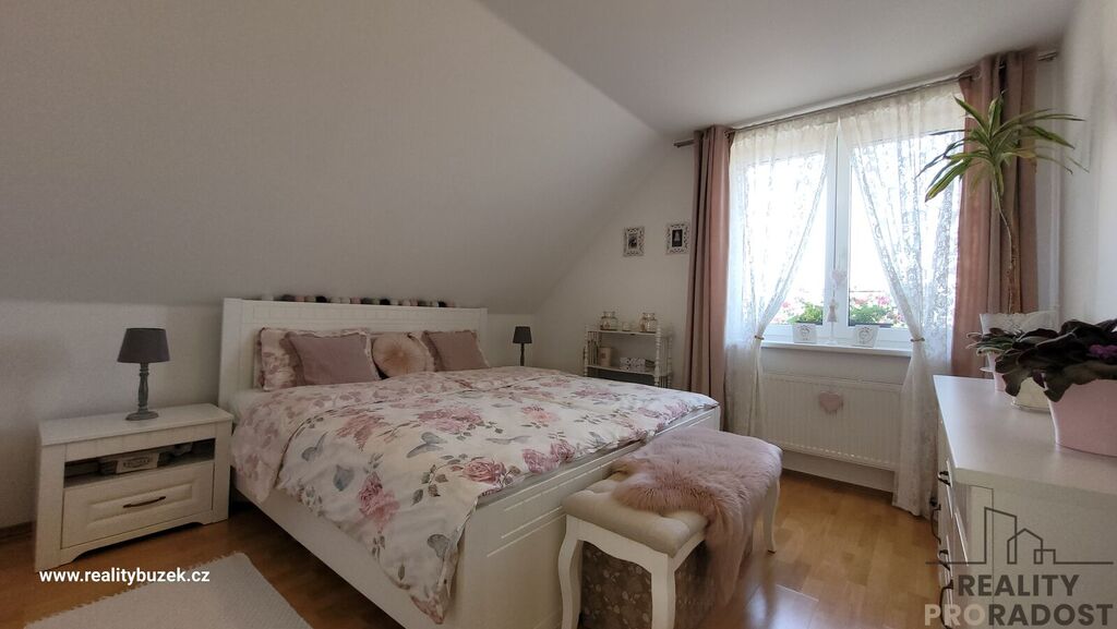 V podkroví jsou tři pokoje a koupelna s wc. Za domem je  malebná zahrada.