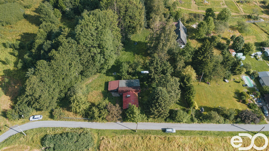 Na pozemku stojí malá dřevěná chatka k rodinné rekreaci, která se těší nádhernému výhledu až na Javorník.