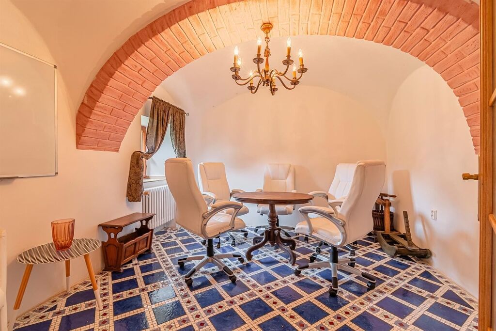 Ve víceúčelovém prostorném domě s úžasnou atmosférou, který po rekonstrukci působící jako šlechtické sídlo, malý zámeček, je veškeré zázemí k využití jak pro rekreační účely, tak i pro trvalé bydlení větší rodiny, společenství. V dispozičně prakticky řešeném dobře prosvětleném domě jsou pokoje ubytovací i velké společenské prostory, v přízemí vše připraveno pro velkou jídelnu, kavárnu, s úpravami využitelnou i jako restauraci. Prostoru pro kavárnu, restauraci, dominuje otevřený renovovaný krb, připravený i na možné vsazení dvouplášťové krbové vložky.