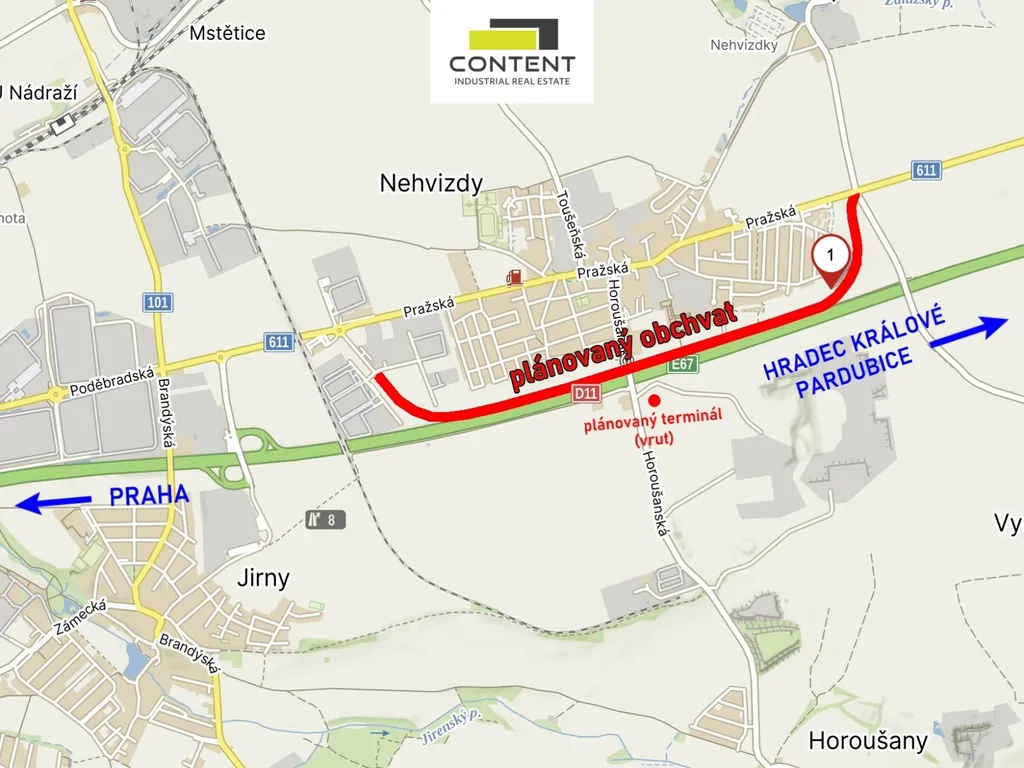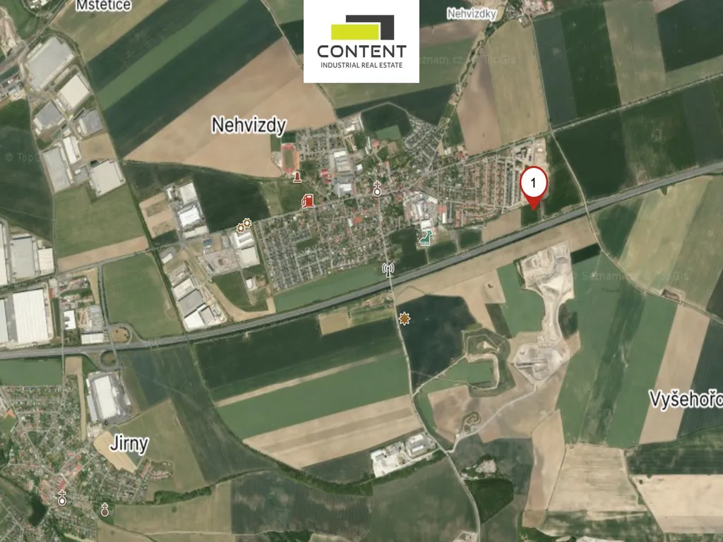 Praha-východ, Nehvizdy. V exkluzivním zastoupení majitele a bez provize nabízíme prodej stavebního pozemku pro komerční využití o celkové velikosti 9021 m². Pozemek se nachází svou polohou podél dálnice D11 na prvním exitu č. 8 z Prahy - Hradec Králové/Pardubice. Jedná se o investiční pozemek s potenciálem budoucího zhodnocení, díky napojení na infrastrukturu a ucelení území na větší celky.