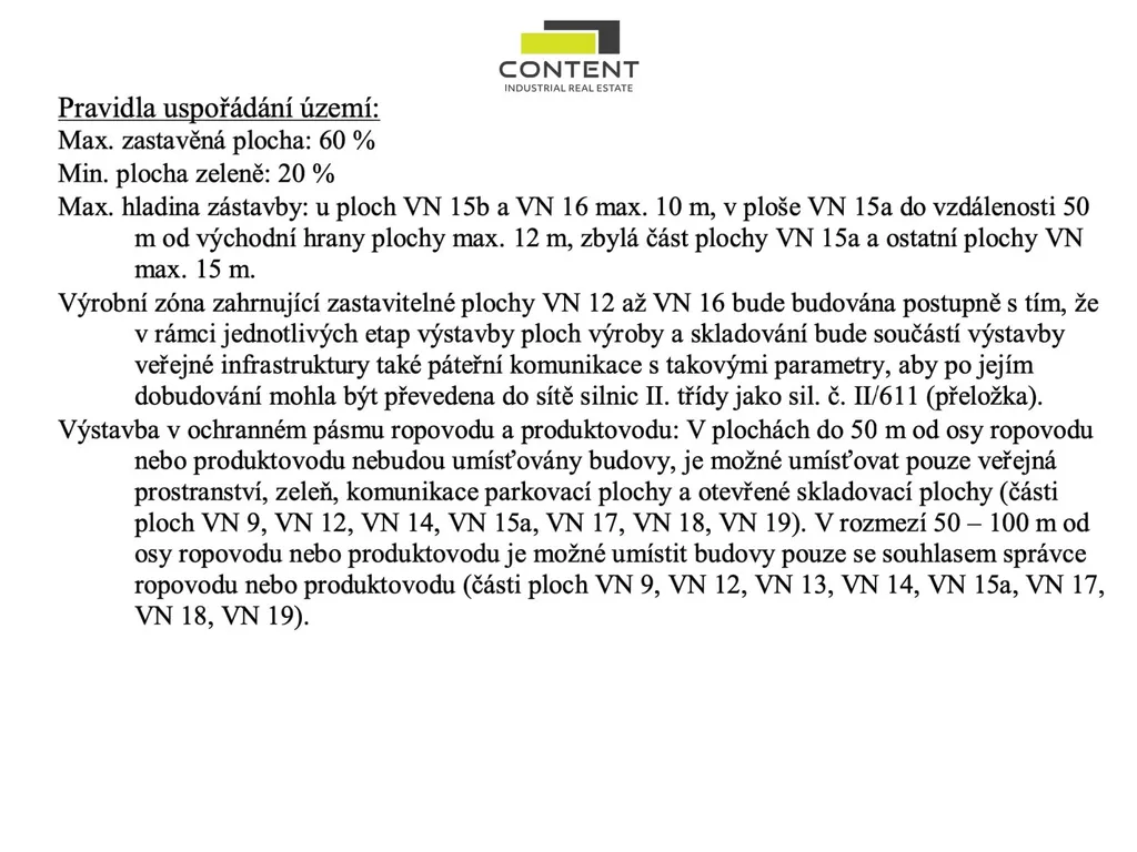 - jedná se o budoucí pokračování stávající průmyslové zóny, kde převažují sídla společností s příslušnými skladovacími nebo výrobními halami.
