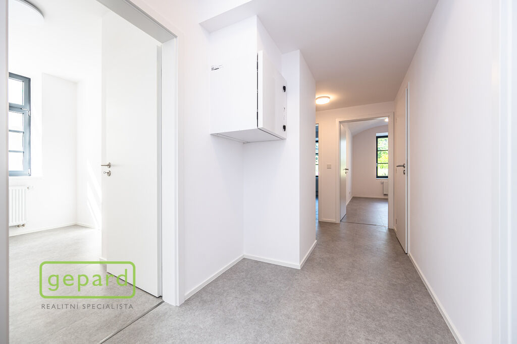 Byty v budově B jsou dokončené ve vysokých standardech jako např.:  plasto-hliníková okna v budově B, podlahy 1.NP vinylové, 2. a 3.NP třívrstvé dřevěné podlahy v barvě dubu, byty jsou vybaveny kvalitní kuchyňskou linkou se spotřebiči Elektrolux a osvětlením, obojí v ceně. Tento byt je navíc vybaven rekuperací. Vytápění je zajištěno společnou plynovou kotelnou v budově. K dispozici je venkovní parkovací stání za 224.000Kč.