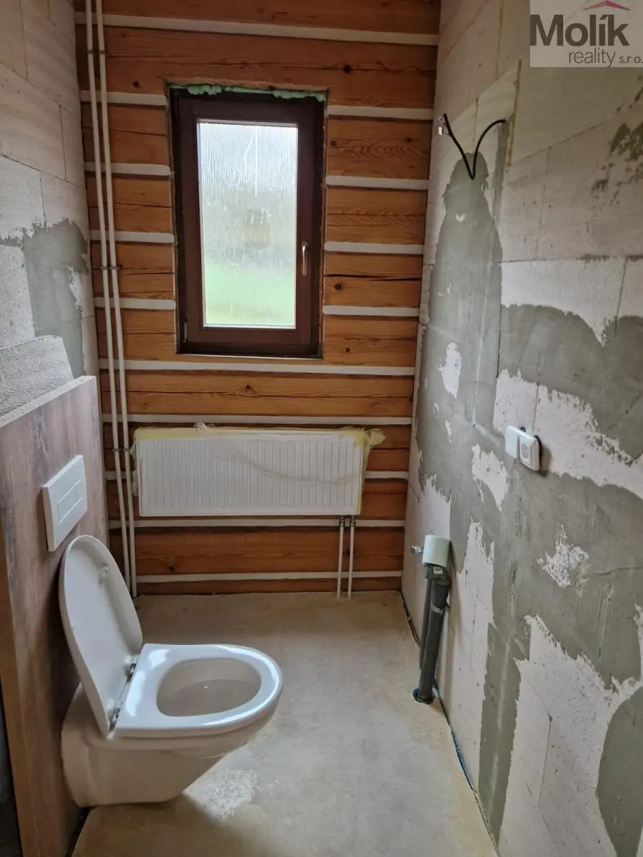Dům je ve fázi dokončení, vytápění lze krbovými kamny, elektrokotlem, ve spodní části domu podlahové vytápění.