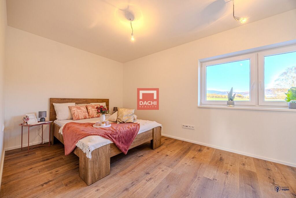 V přízemí domu najdeme velkorysou, prosvětlenou obývací zónu s kuch.koutem a jídelním koutem v budoucnu se vstupem na terasu nebo na zahradu. Dále je také v přízemí špajz, koupelna se sprchovým koutem a WC, technická místnost a praktická šatna. V 1. patře pak najdeme 2 samostatné neprůchozí pokoje, ložnici s pracovním koutem, relaxační koupelnu s vanou, samostatné WC. Možnosti rozšíření a zpřístupnění podkroví pro hernu, fitness nebo relaxační zónu. Podlahy budou pokryty vinylovou krytinou, která je nejen praktická, ale i estetická. Součástí kupní ceny je také kuchyňská linka včetně vestavěných spotřebičů, sanitární vybavení a obložkové dveře. V ceně je zahrnuto oplocení a zámková dlažba před domem. Nad rámec kupní ceny je možné dořešit pergolu, oplocení terasy, kryté parkovací stání pro auto, zabezpečovací systém, fotovoltaické panely s možností dotace nebo realizaci interiérů dle přání a nápadů budoucích majitelů. Dům je dokončený, zkolaudovaný a připravený k bydlení.