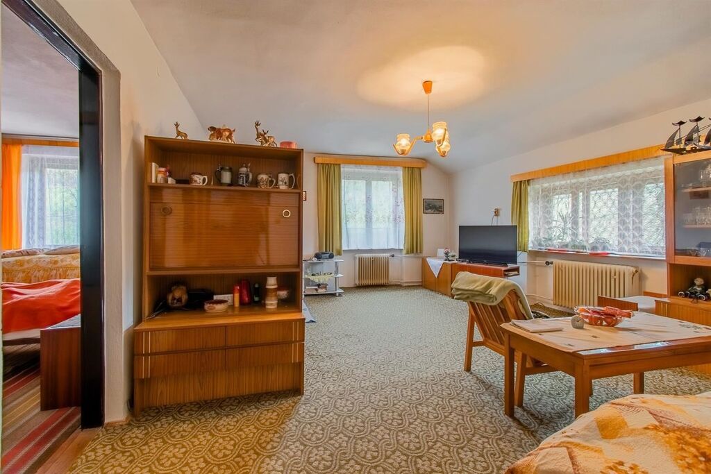 Patrový rodinný dům, ve kterém jsou aktuálně tři (3) samostatné byty, je podsklepený, s využitelným podkrovím. Okolo domu samozřejmě nechybí prostorná zahrada, která je dle platného ÚP v zastavitelném území a pozemek (travnatá plocha) naproti domu přes cestu (p.č.1989). Celková výměra pozemků činí 3.935 m2, nicméně je možno ještě přikoupit pozemek p.č. st.81 o výměře 387 m2 a pozemek p.č. 1985 o výměře 149 m2 (nejsou zahrnuté v ceně nabídky).