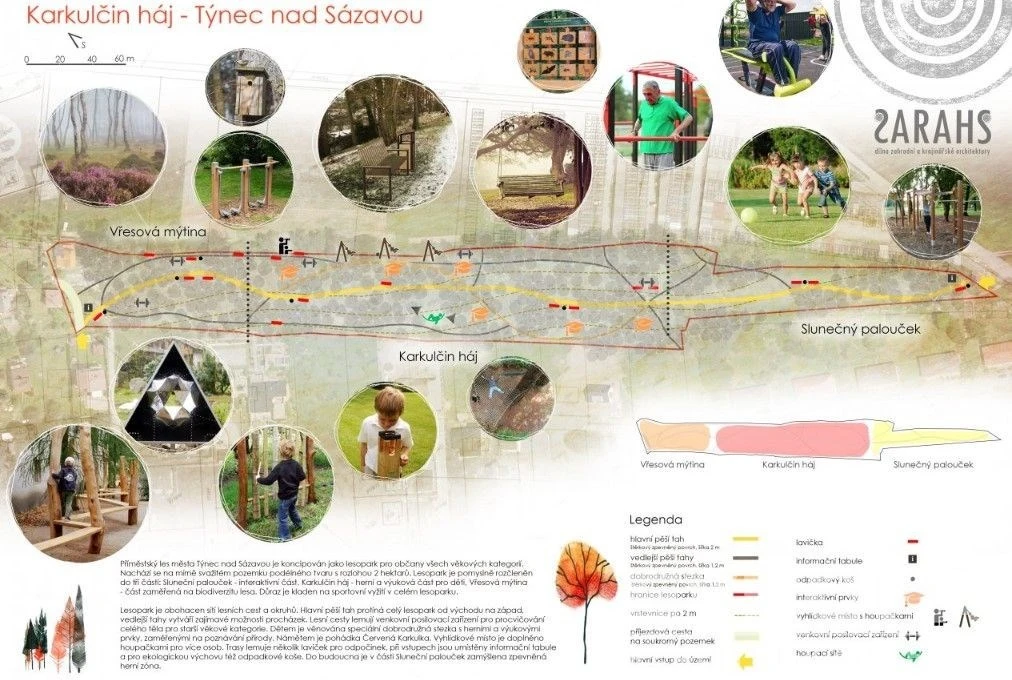 Týnec nad Sázavou je i díky zlepšení dopravní dostupností (dostavba D3) jedním z rychle se rozvíjejících měst. Rezidenční charakter a klidné prostředí vhodné pro rodiny s dětmi nebo pro ty, kteří hledají útočiště před ruchem velkých měst. Pozemek zaručuje i v budoucnu dostatek klidu jedinečná stezka lesoparkem tzv. Karkulčin háj, vede přímo pod tímto pozemkem krásné místo s venkovním fitness a dětským hřištěm.