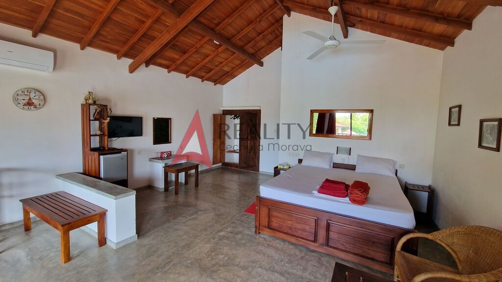 Nabízíme k prodeji krásný resort na jihovýchodě Srí Lanky s navazující vlastní pláží přímo u Indického oceánu postavený před 6-ti lety. Resort se nachází v subtropickém pásmu. Ubytování se skládá z 10-ti dvoupodlažních budov. V přízemí i na poschodí je vždy po jednom apartmánu pro 2 osoby s možností přistýlky s výhledem směrem k oceánu. Při cestě z apartmánu tropickou zahradou dojdeme k bazénu a jídelně s kuchyní. V kuchyni se připravují jak místní tradiční jídla, tak i jídla evropská. Pokud pokračujeme dál k oceánu přijdeme na nádhernou písečnou pláž. V resortu pracují místní zaměstnanci, česká tlumočnice a vedoucí celého resortu, který dohlíží na chod celého areálu. Pro ubytované se organizují výlety do nedaleké sloní rezervace, výlety lodí za velrybami, návštěvy ajurvédských zahrad, památek... V případě zájmu organizuje resort i výlety do Indie. V zadní části zahrady se uvažuje o vybudování velkého apartmánového domu o 2 podlažích, který by značně rozšířil kapacitu celého resortu.