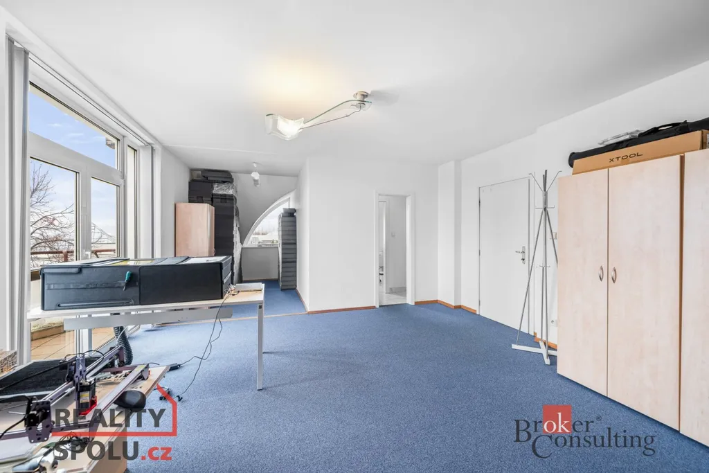 Na prodej administrativní objekt s vlastním pozemkem v obci Průhonice, který lze rekolaudovat na prostorný rodinný dům. Jedná se o třípatrovou budovu o celkové výměře 447 m², včetně parkovacích míst za branou pro minimálně 12 aut. Aktuálně je budova rozčleněna na 9 oddělených místností, což poskytuje široké možnosti přizpůsobení dispozic pro rodinné bydlení. Přízemí nabízí vstupní halu, kancelář, zasedací místnost a garáž, která by mohla sloužit jako sklad nebo parkovací prostor. První patro obsahuje pět místností vhodných pro ložnice nebo pracovny, druhé patro pak disponuje dvěma místnostmi a velkým prostorem, ideálním pro společenské aktivity. Nový plynový kotel Viessmann zajišťuje efektivní vytápění a ohřev TUV. Na pozemek je vjezd automatickými vraty a vše je zabezpečeno EZS. Okolní zeleň zajišťuje příjemné prostředí pro relaxaci. Díky výborné dostupnosti Prahy a dálnice D1 je tento objekt ideální pro rodinné bydlení.
