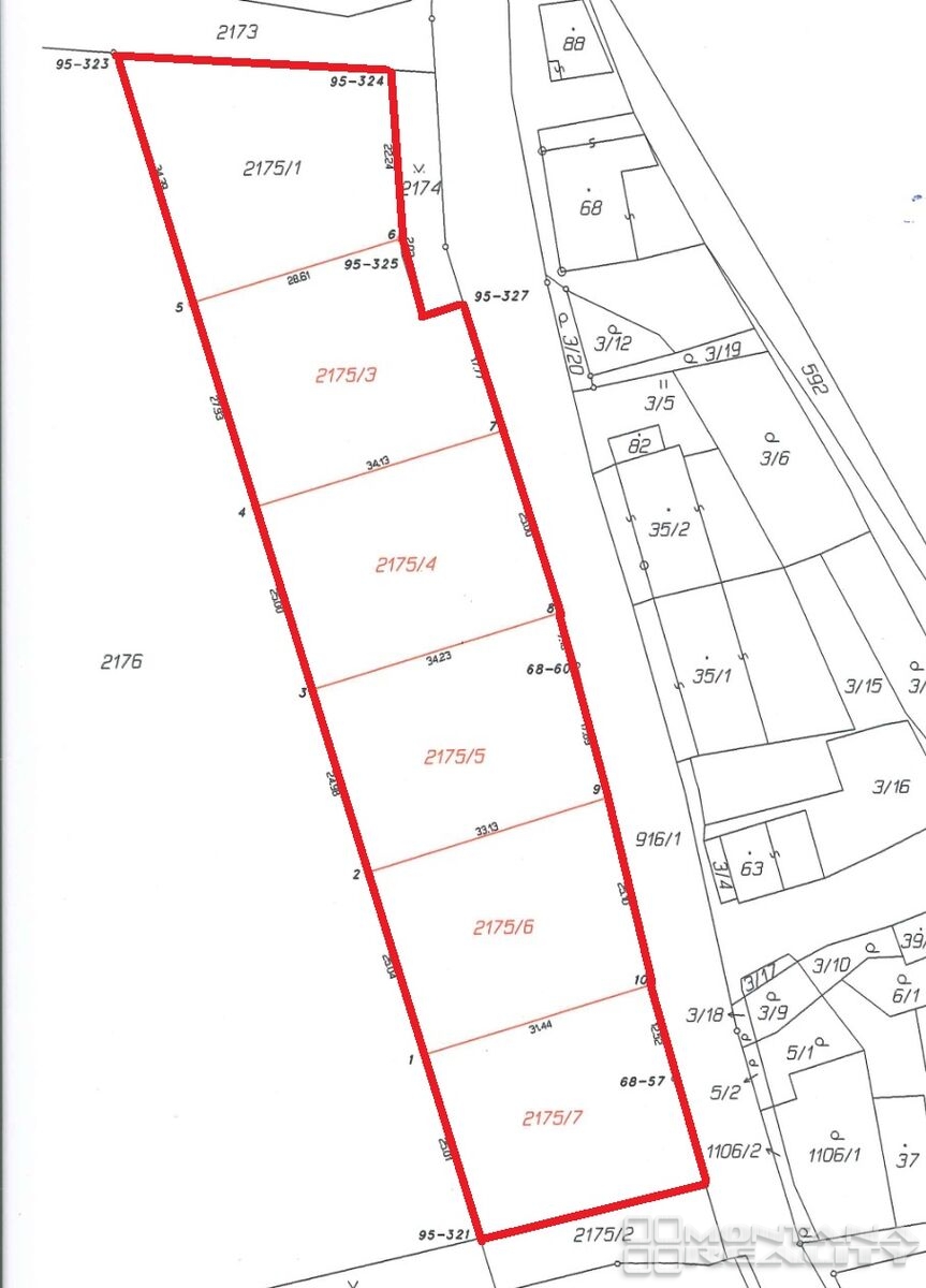K pozemku je připravený geometrický plán na jeho rozdělení na 6 samostatných parcel za účelem výstavby rodinných domů s výměrami pozemků od 801 m2 do 891 m2 nebo s dalšími variantami spojování sousedních pozemků.