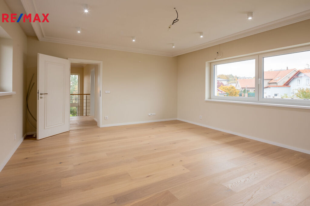 Velká rovná zahrada obklopující dům je jako stvořená pro rodinné oslavy, hry dětí nebo odpočinek na čerstvém vzduchu. Díky jejímu uspořádání si ji můžete přizpůsobit přesně podle svých představ – ať už sníte o bazénu, altánu nebo ovocném sadu. Součástí domu je garáž, která zajišťuje prostor pro uskladnění sportovního vybavení nebo nářadí.