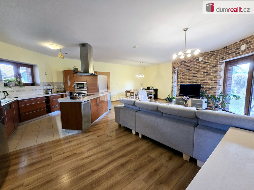prodej rodinného domu ve Staré Boleslavi, která je součástí dvojměstí Brandýs nad Labem-Stará Boleslav. Ne, náhodou se toto město pravidelně umisťují v TOP 5 městech v ČR, podle indexu kvality života a bydlení. Dům je dispozičně řešen jako 4+kk a disponuje užitnou plochou přes 140 m² a pozemkem o rozloze cca 649 m². V případě potřeby lze upravit dispozici dle vlastních potřeb. Nosné stěny v domě jsou pouze obvodové. Díky tomu lze všechny vnitřní příčky upravit a také v případě nutnosti řešit výměnou vazníků rozšíření prostoru o dalších cca 90m². Součástí pozemku je také zahradní domek o velikosti 24m² s mezipatrem , sloužící pro uskladnění všeho potřebného od kol, lyží ,sekačky, kol pro auta. Dále je na pozemku zkolaudovaná studna, sloužící jako vlastní zdroj vody pro zalévání zahrady. Zde je již vybudována závlaha. Dům byl kolaudován roku 2008 a postaven z veloxu o tloušťce 37 cm s vloženou 15cm tepelnou izolací. Výška stropů v domě je 2, 62 m². Vnitřek domu je uspořádán následovně: přes zádveří (jsou zde již vybudované vestavěné skříně) navazuje prostorná chodba, odkud jsou přístupné všechny místnosti v domě. Konkrétně se bavme o dvou dětských pokojích/ložnicích, technické místnosti/prádelně a koupelny, která je společná s toaletou. Najdeme zde sprchu i rohovou vanu. Z chodby se rovněž dostaneme do velkoryse řešeného obývacího pokoje s kuchyňským koutem, který byl prakticky rozdělen na několik zón. Současní majitelé zde vybudovali prostor pro trávení času u televize, tedy klasický obývací pokoj, kuchyňský kout s dostatkem prostoru i pro velké kuchtíky, ale také jídelní, nebo pracovní kout. Ze všech obytných místností vede přímý vstup na terasu/ zahradu. Na oknech jsou nainstalované venkovní rolety. Vytápění v domě je řešeno, jako podlahové teplovodní, tedy bez radiátorů. Teplotu v jednotlivých místnostech lze regulovat termostaty. Dům pro ohřev vody a rekuperaci využívá jednotku LWA 303 od firmy Stiebel Eltron. Dům se vyznačuje dostatkem soukromí a vskutku jedinečnou atmosférou. Pokud si přejete bydlet v klidu a mít kolem sebe dostatek zeleně, přesto být součástí města s výbornou dostupností do Prahy, pak je tento dům právě pro Vás. V Brandýse n/L a St. Boleslavi najdete vše co k životu potřebujete a bude Vás činit šťastnými. Poloha domu je velmi dobře položena v rámci města. Pěšky se dostanete do centra za 7 minut. V centru je základní škola, obchody, atd. Mateřská škola ve vzdálenosti 2 minut od domu. Pokud jste milovník přírody, ať zvolíte koupání na Proboštských jezerech, nebo procházku lesem, máte to téměř za rohem. Jestli máte rádi sporty – golfové hřiště 5minut, tenisový a squashový kurt 1min. od domu pěšky. Velkou výhodou celé lokality je, že dům je umístěn ve slepé ulici.