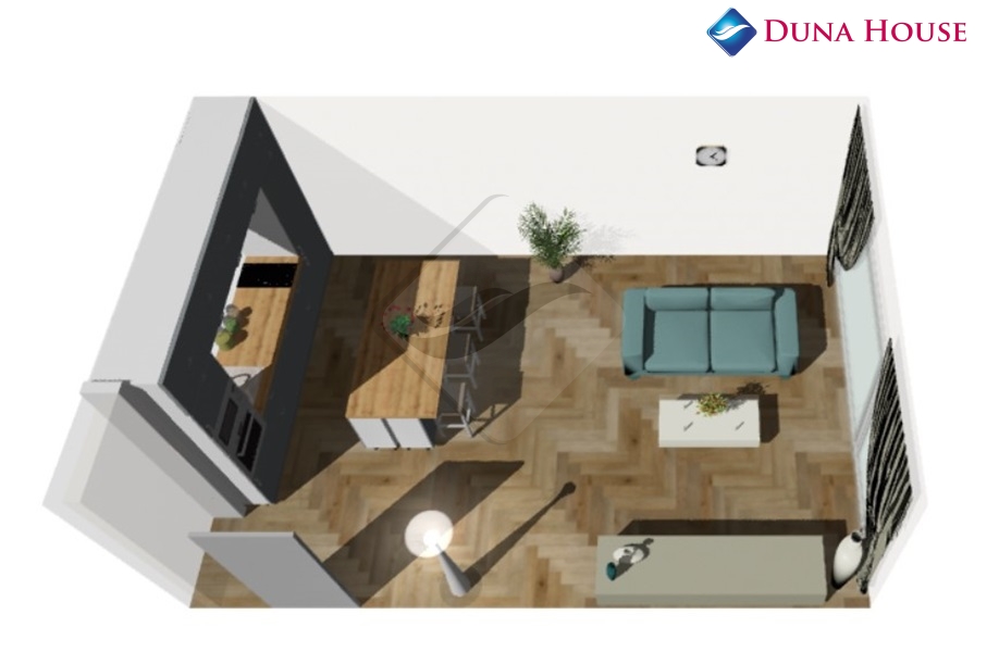 Vizualizace je pouze ilustrační. Jednotka nebude vybavena nábytkem, pouze sanitou v koupelně.