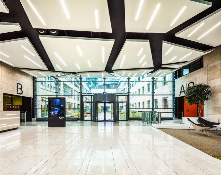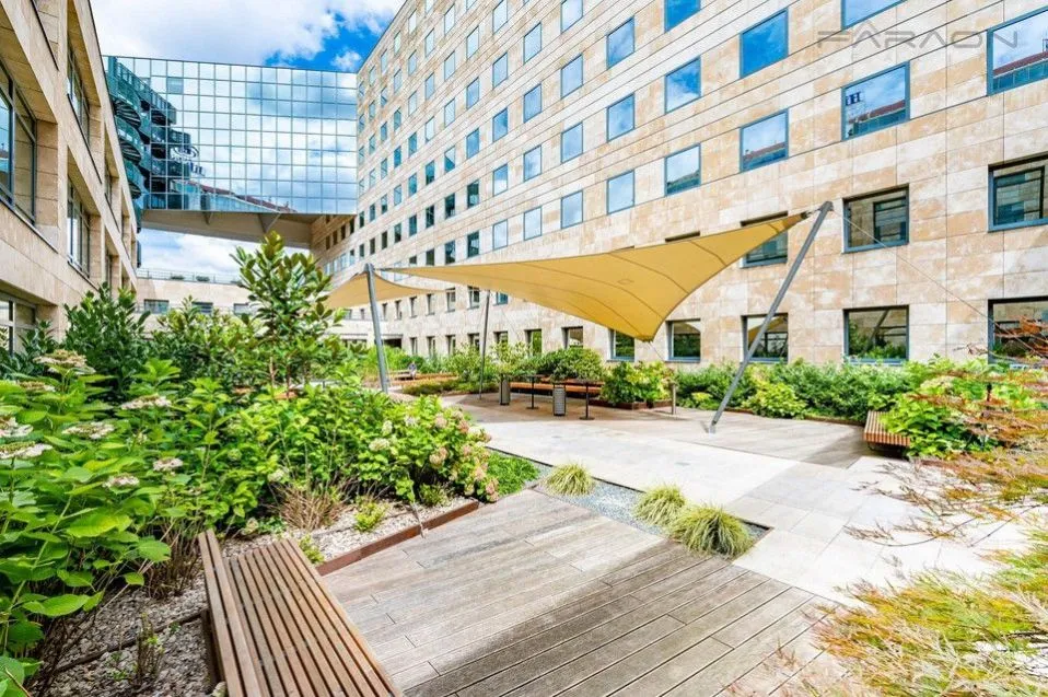 Pronájem kancelářského prostoru (1059 m2) s terasou (184 m2) a možností parkování v podzemních garážích, nacházející se ve 3.nadzemním podlaží administrativního komplexu mezinárodního obchodního centra (IBC) v docházkové vzdálenosti od centra města. V osmi nadzemních a dvou podzemních podlažích nabízí budova celkem 24.000 m2 kancelářských prostor s plným servisem a celkem 300 parkovacích míst. Celý komplex skládající se ze 3 budov je postaven kolem atria plného zeleně. Výrazná flexibilita této budovy se odráží především ve skutečnosti, že půdorys kanceláří je navržen speciálně podle potřeb těch nejnáročnějších uživatelů.