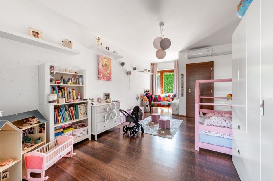 Nadčasová, nízkoenergetická (B), velkoryse pojatá, třípodlažní vila (z roku 2012) s bazénem, prosvětleným a vzdušným interiérem na slunném upraveném pozemku (2276m2). Dům je součástí uzavřeného, rezidenčního komplexu luxusních vil v mimořádně klidné lokalitě Velká Chuchle v krásné komorní čtvrti Prahy 5 se vzrostlou zelení zasazené do klidného, jedinečného místa obklopeného vzrostlou zelení, v blízkosti Radotínsko-Chuchelského háje a přírodní rezervace Homolka nabízí ničím nerušené výhledy do zahrady, přilehlé zeleně a panorama Prahy. Luxusně vybavená vila je vhodná i pro vícegenerační bydlení nebo pro velkou rodinu s chůvou.