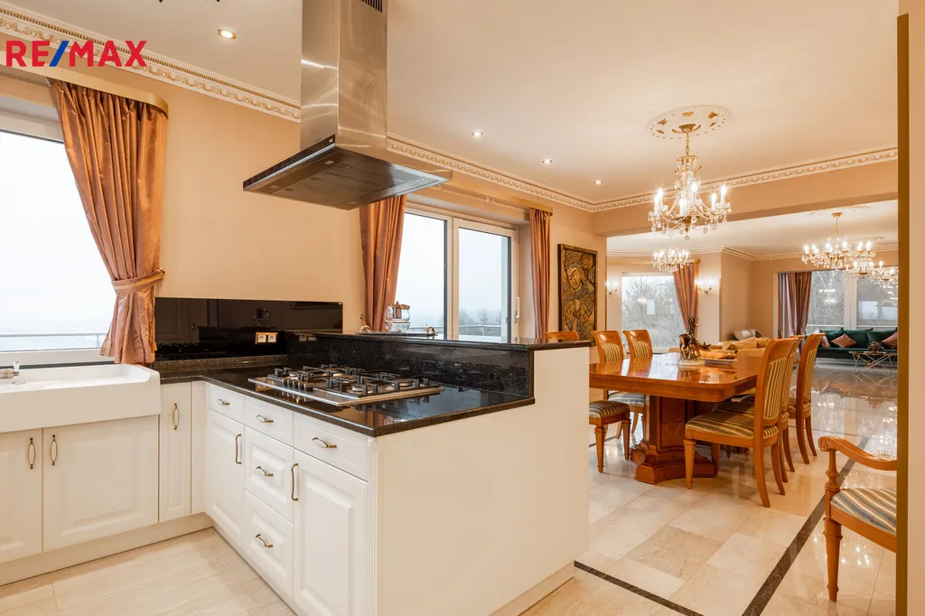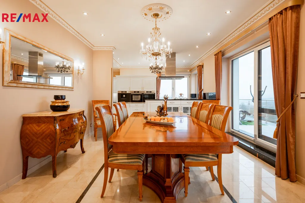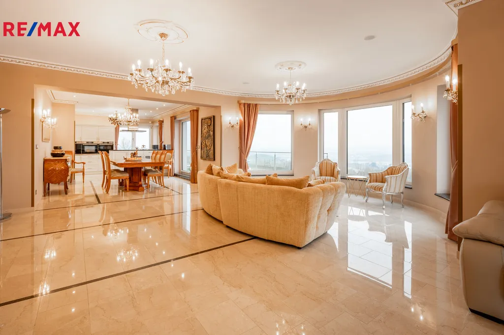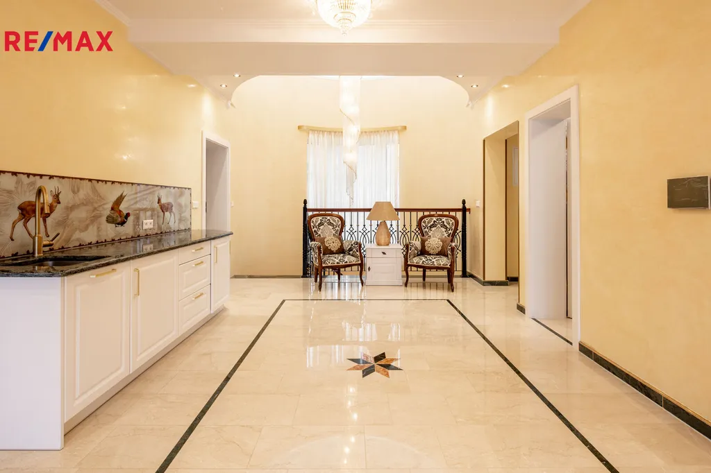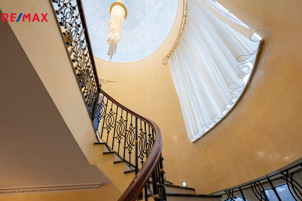 Každý detail tohoto domu byl promyšlen tak, aby z něj vyzařovala elegance a funkčnost. Celý interiér propojuje honosné mramorové schodiště, jehož elegantní linie a řecká kupole nad ním dodávají domu jedinečnou atmosféru a pocit vzdušnosti.