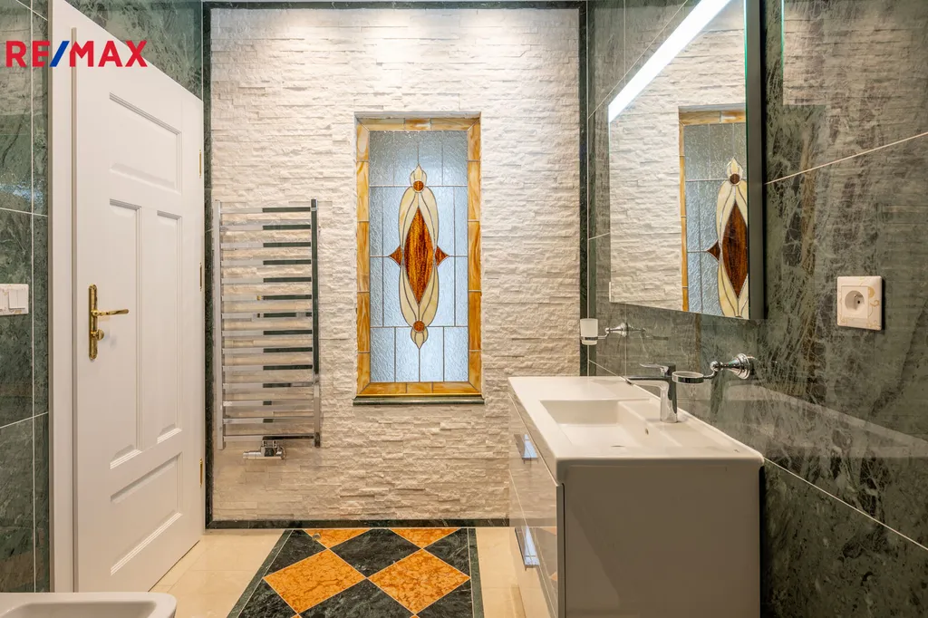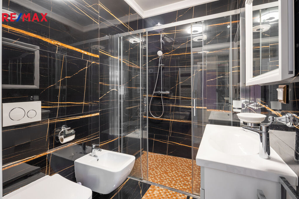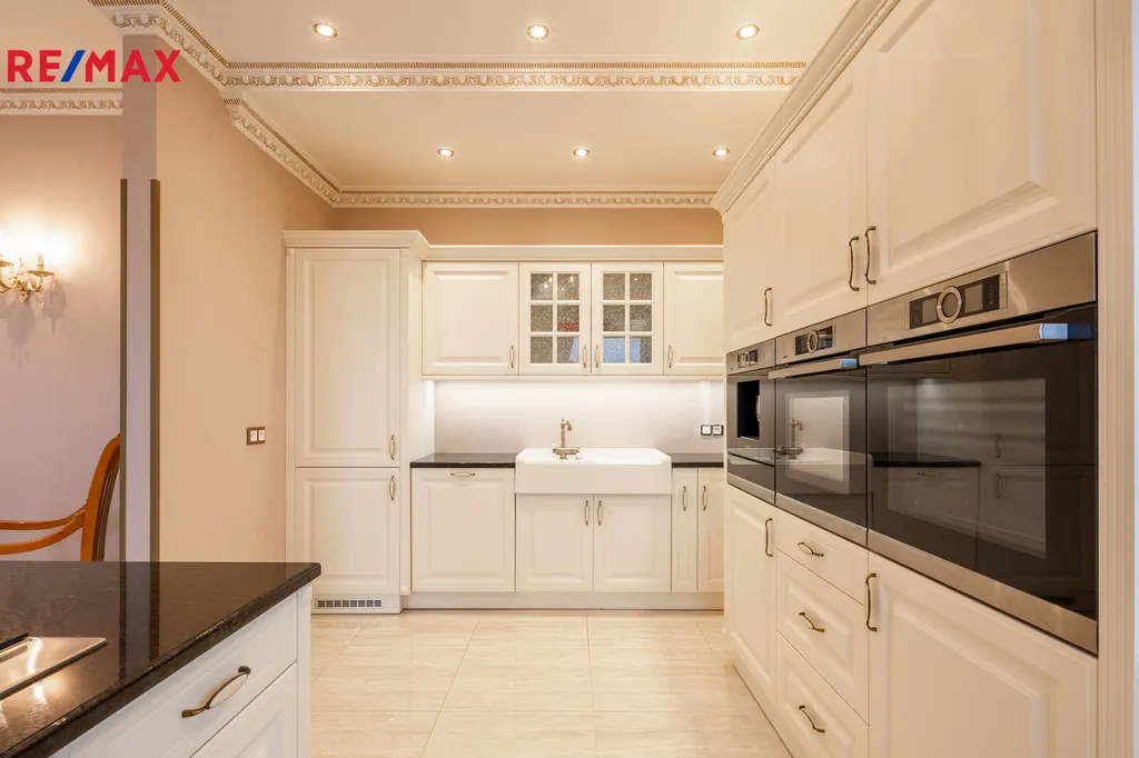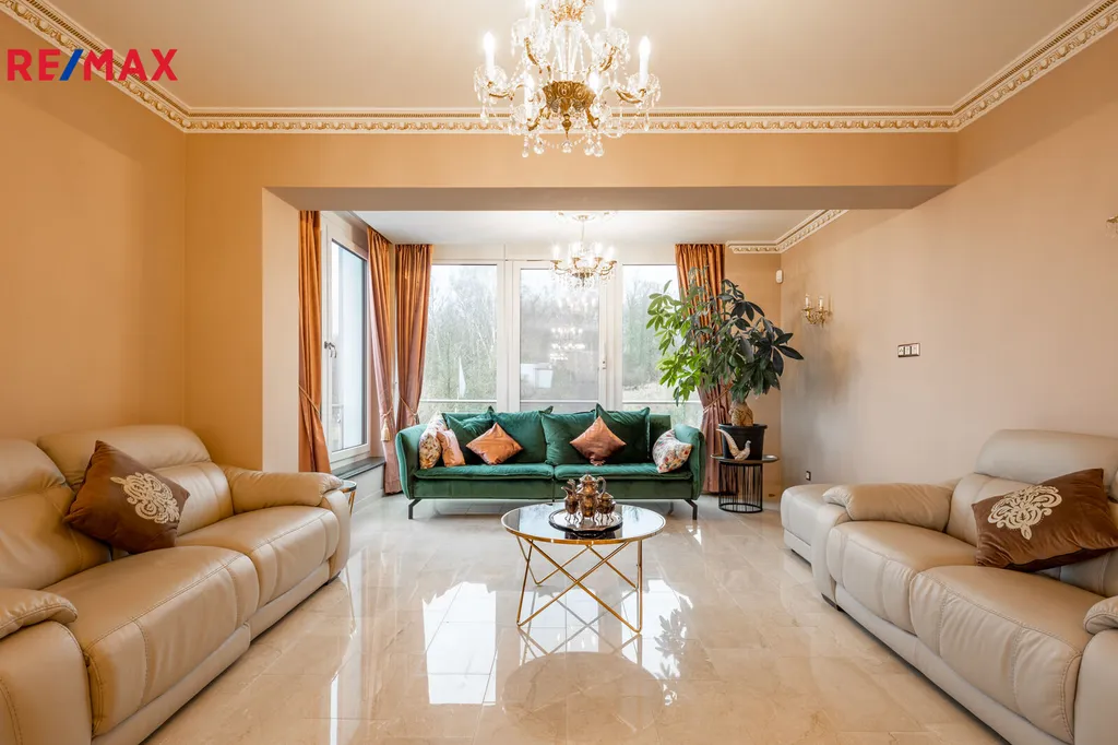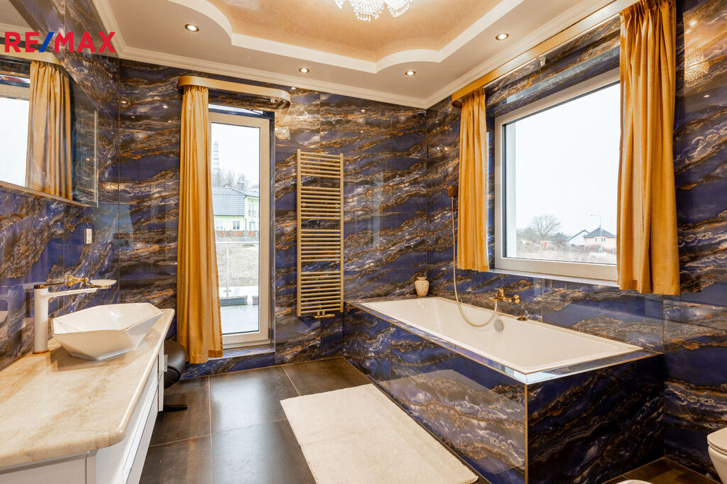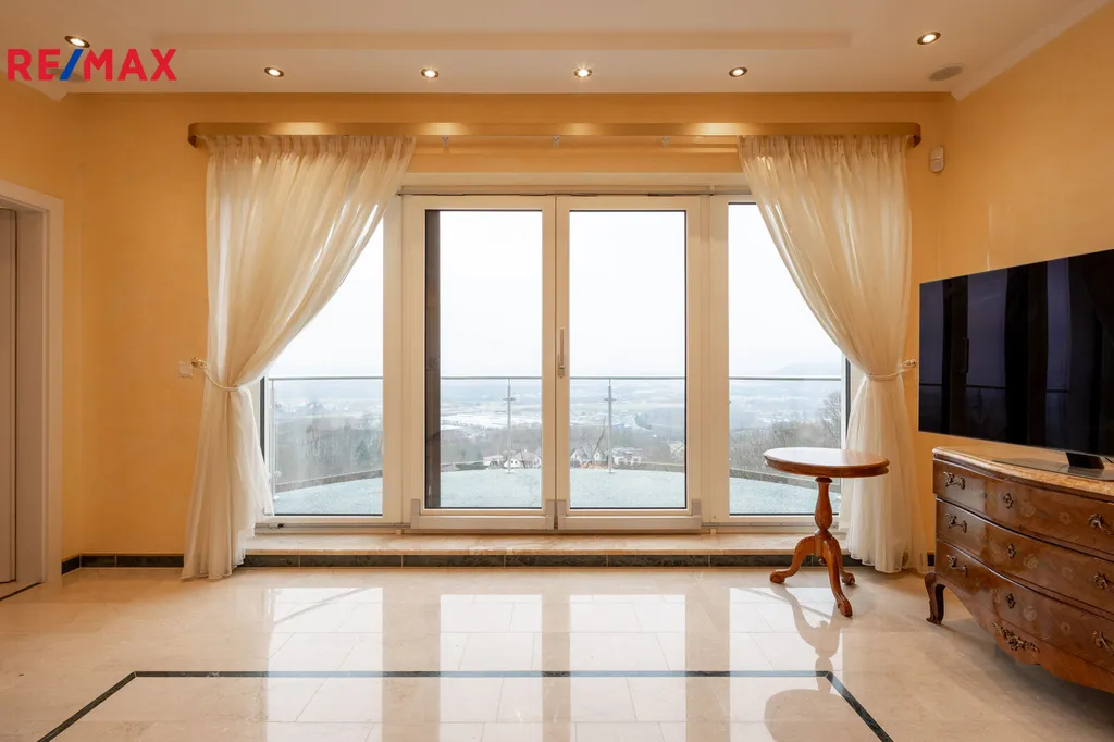Každý detail tohoto domu byl promyšlen tak, aby z něj vyzařovala elegance a funkčnost. Celý interiér propojuje honosné mramorové schodiště, jehož elegantní linie a řecká kupole nad ním dodávají domu jedinečnou atmosféru a pocit vzdušnosti.