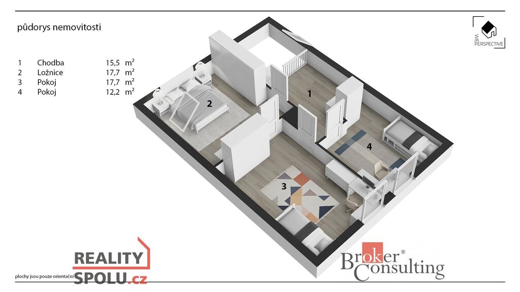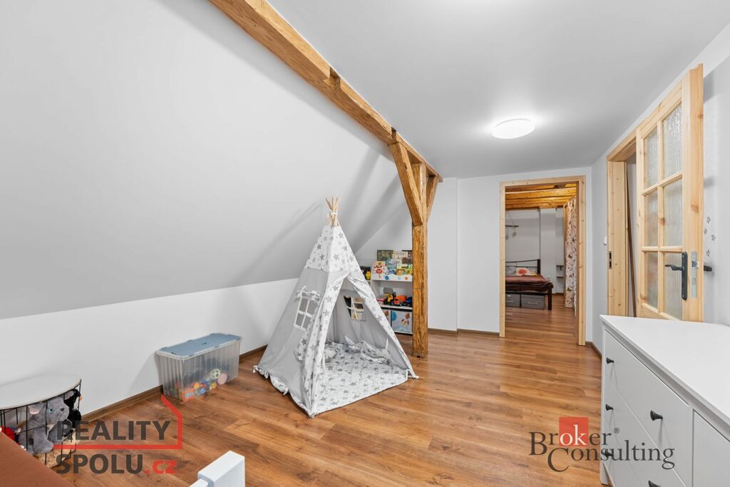 Podkroví: ložnice, 2 samostatné pokoje, vstup na půdu.