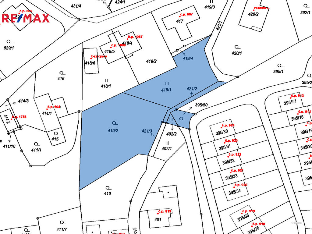 Pozemek leží v klidné zástavbě mezi ostatními pozemky s rodinnými domy, je krytý ze všech stran vegetací a poskytuje tak dokonalé soukromí. Jedná se o lokalitu mezi ulicemi Svornosti a Tulipánová. Nemovitost je složena z těchto pozemků: p.č. 419/1 (670 m2), 419/2 (1227 m2), 421/2 (73 m2), 395/50 (63 m2) a 402/2 (16 m2).